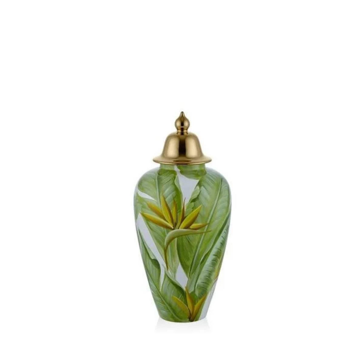 Lamedore Yeşil Yaprak Desenli Kapaklı Küp Küçük Boy 23x49,5 cm