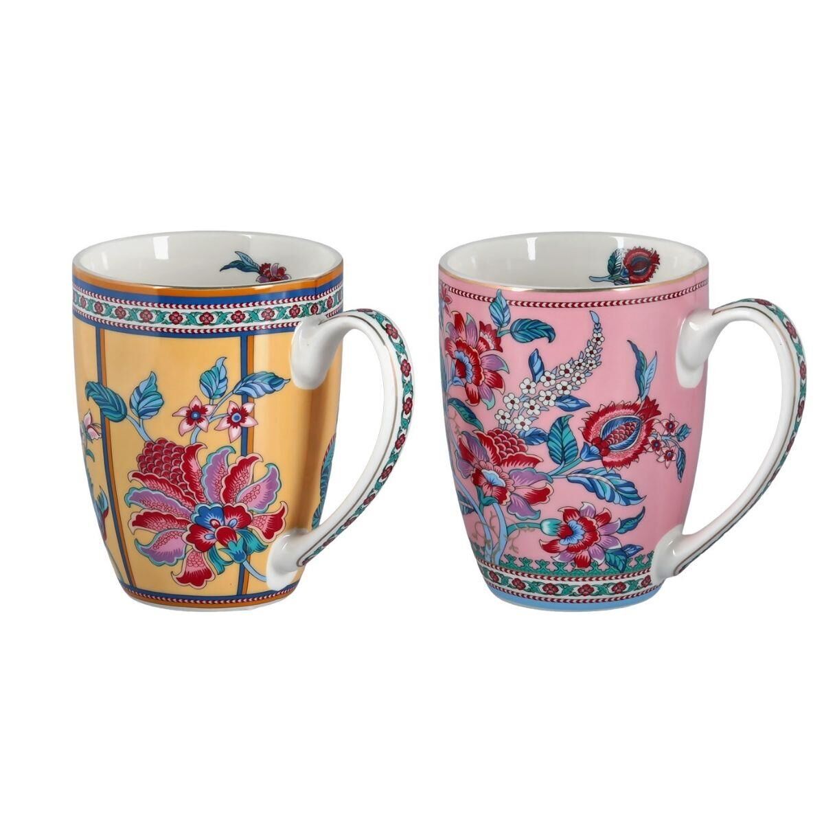 Set, farklı renklerdeki desenleriyle birbirini tamamlar. Biri, sarı zemin üzerine mavi ve kırmızı tonlarında çiçek motifleriyle süslenmişken, diğeri pembe zemin üzerine benzer çiçek desenlerine sahiptir.