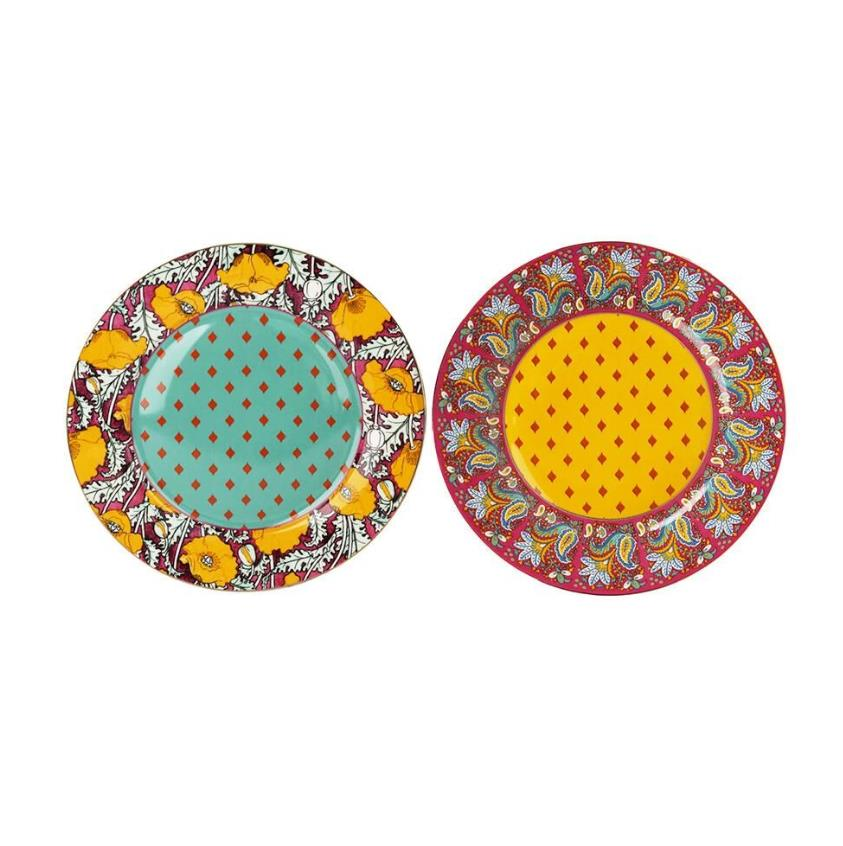 Eliana Bone China Porselen Karışık Desenli 4'lü Servis Tabağı Seti, 27 cm çapıyla geniş bir servis alanı sunar ve şıklığıyla sofralarınıza zarif bir dokunuş katar. Yüksek kaliteli bone china porselenden üretilmiş bu set, bordo,sarı, yeşil, altınve pastel tonlarında çeşitli karışık desenlerle bezenmiştir, estetik bir görünüm sağlar. Dört adet geniş servis tabağı, ana yemeklerinizi, mezelerinizi veya büyük porsiyon tatlılarınızı şık bir şekilde sunmak için idealdir. Elde yıkanması tavsiye edilen bu tabaklar, uzun ömürlü kullanım ve yüksek kalite sunar. Kullanım sonrası, hafif deterjanlı suyla nazikçe yıkanması ve nemli bir bezle silinmesi, desenlerin ve porselenin kalitesini korur ve setin estetik görünümünü uzun süre muhafaza eder.