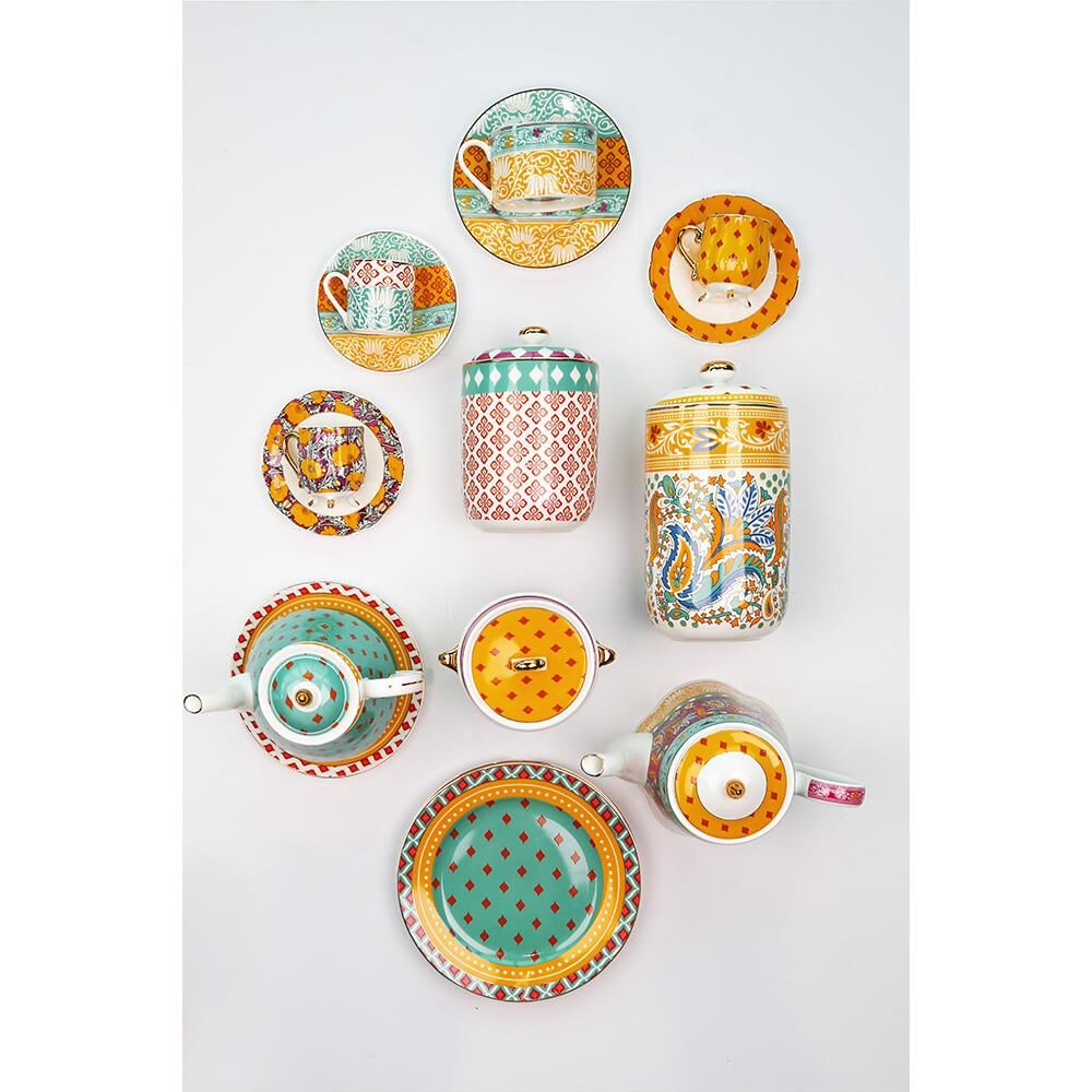Eliana Bone China Porselen Karışık Desenli 4'lü Kahve Fincanı Seti, şıklığı ve zarafeti bir araya getirir. Yüksek kaliteli bone china porselenden üretilmiş bu set, her biri canlı mint,sarı, bordo altın ve pastel tonlarında çeşitli karışık desenlerle bezenmiş dört adet kahve fincanı içerir. Fincanlar, kahvenizi ideal sıcaklıkta ve şık bir şekilde sunmak için tasarlanmıştır, sofistike detayları sayesinde masalarınıza zarif bir hava katar. Elde yıkanması tavsiye edilen bu fincanlar, uzun ömürlü kullanım ve estetik görünüm sağlar. Kullanım sonrası, hafif deterjanlı suyla nazikçe yıkanması ve nemli bir bezle silinmesi, desenlerin ve porselenin kalitesini korur. Bu set, hem günlük kahve keyfinizde hem de özel davetlerde mükemmel bir tercihtir.