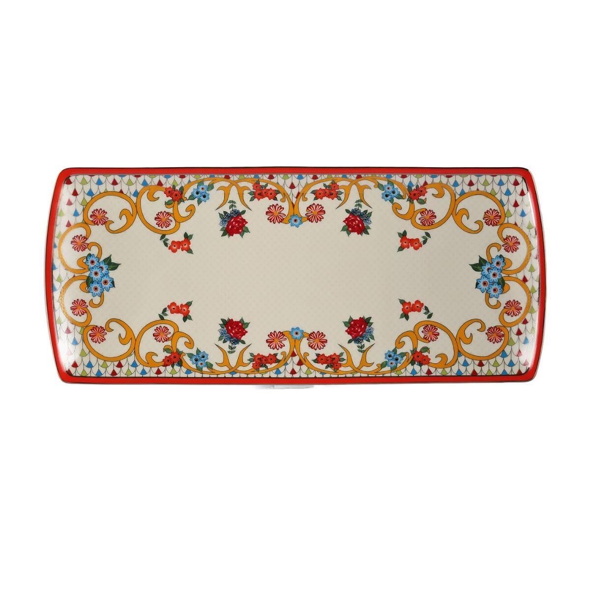 Fiora Serisi, çiçek bahçelerinin coşkusunu, Akdeniz’in sıcak renklerini ve geleneksel desenlerin zarafetini bir araya getiriyor. Her bir parça, el işçiliğini andıran ince detaylarla bezenmiş; kırmızı güller, mavi çiçekler ve altın kıvrımlar, sofranıza adeta bir sanat eseri gibi yerleşiyor.