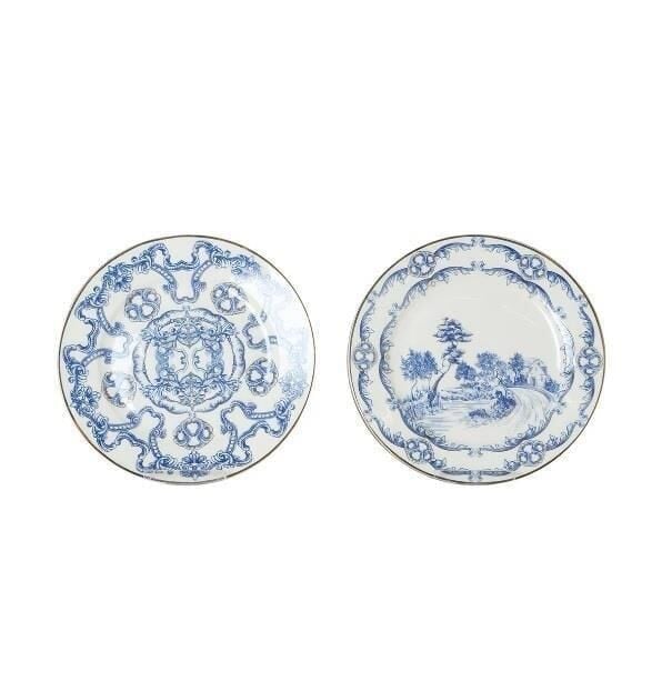 Lucky Art Florance Bone China Porselen Mavi Beyaz Naturel Barok Desenli 4’lü Pasta Tabağı Seti (20 cm), zarafeti ve şıklığı bir arada sunan bir parça.