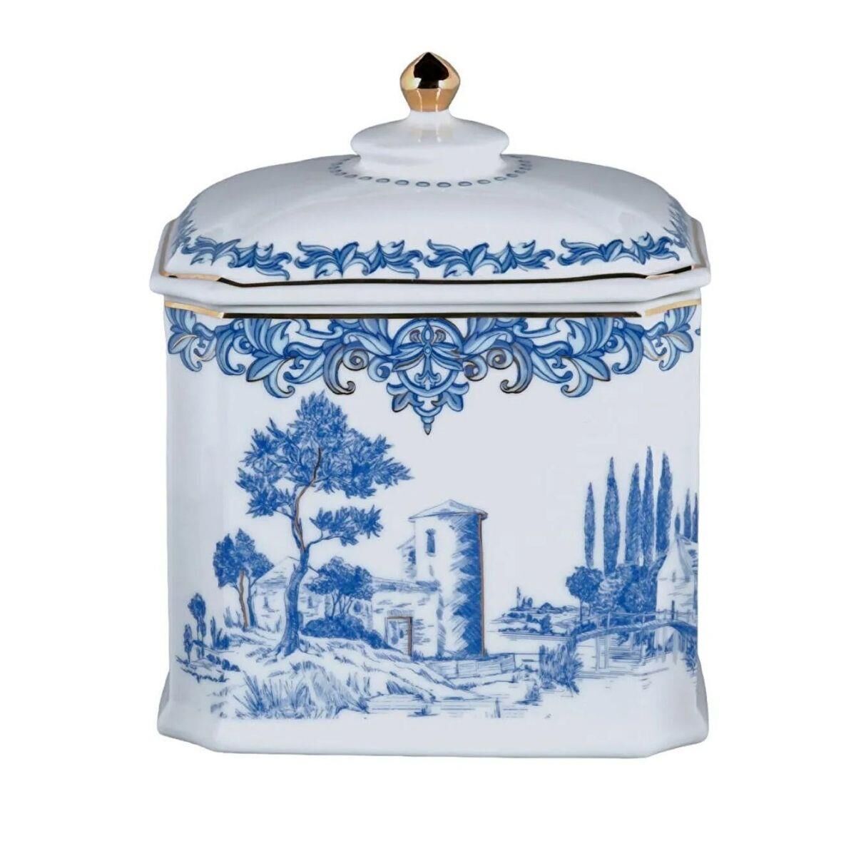 Florance Köşeli Kavanoz, klasik zarafeti modern bir formla birleştirerek evinize şıklık katıyor. 19 cm boyundaki bu zarif kavanoz, hem gıdalarınızı taze tutan pratik bir saklama çözümü sunar hem de mavi-beyaz porselenin zamansız güzelliğiyle göz alıcı bir dekoratif parça haline gelir. Ürün Özellikleri: Set İçeriği: 1 adet köşeli kavanoz (kapaklı) Boyut: 19 cm yükseklik Malzeme: Bone porselen Hacim: 1225 cc Kapak: Hava geçirmeyen kapak ile uzun süre tazelik koruması Kullanım: Çay, kahve, şeker, baharat veya küçük eşyaların saklanmasına uygun. Bakım: Elde yıkama önerilir. Desenler: Kavanozun gövdesi, geleneksel porselen sanatını yansıtan, zarif bir şekilde işlenmiş mavi manzaralar ve figürlerle süslenmiştir. Kapakta da aynı desen devam ederek bütünlüklü ve şık bir görünüm sağlar. Teknik Bilgiler ve Dayanıklılık: Bone porselenin dayanıklı yapısı sayesinde kavanoz, günlük kullanıma karşı dirençlidir. Hava geçirmeyen kapak sistemi, gıdalarınızın nem ve kokuya karşı korunmasını sağlayarak tazeliğini korur. Çatlamaya ve renk solmasına karşı dayanıklıdır. Detaylar ve Kullanım Alanları: Bu zarif kavanoz, mutfağınızda veya vitrinlerinizde klasik ve sofistike bir dokunuş yaratır. Kare formu sayesinde, raflarda daha düzenli bir görünüm sağlar. İçine koyacağınız gıdaların yanı sıra, banyoda veya ofiste küçük eşyaları düzenlemek için de kullanılabilir. Kalitesi ve zamansız tasarımıyla, sevdiklerinize de anlamlı ve değerli bir hediye seçeneğidir. Florance kavanoz ile evinize hem düzen hem de klasik bir zarafet katın.