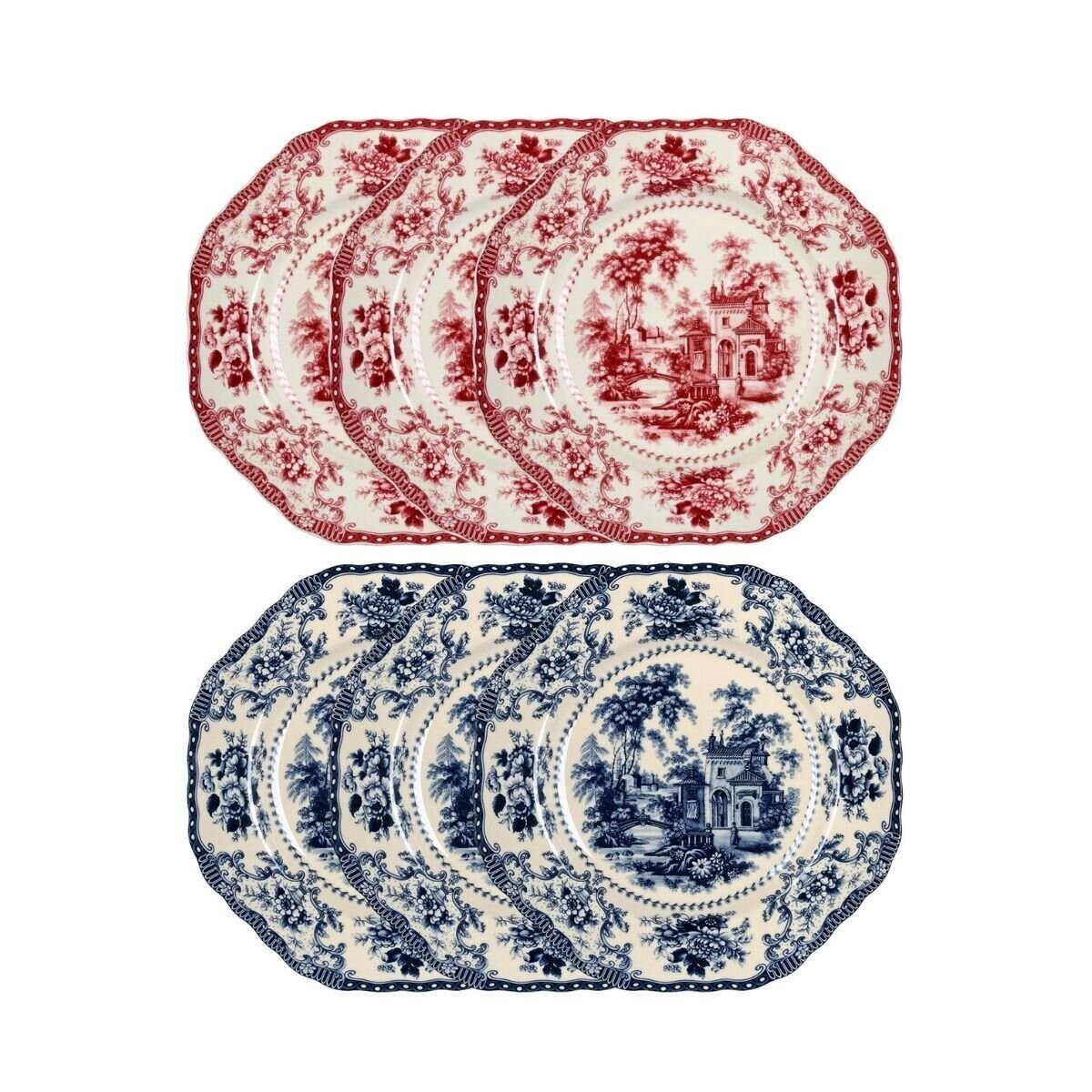 Set İçeriği: 6 adet tabak (3 Kırmızı, 3 Mavi desenli)