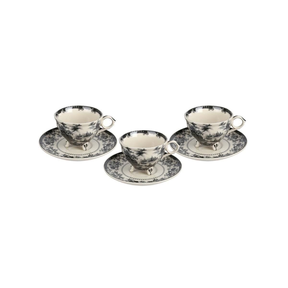 Lucky Art Florantıne 6lı Ayaklı Çay Fincanı Set Siyah