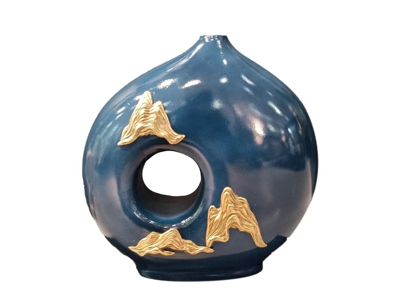 Lucky Art Gold Dalgalı Mavi Vazo 27x11x28 cm