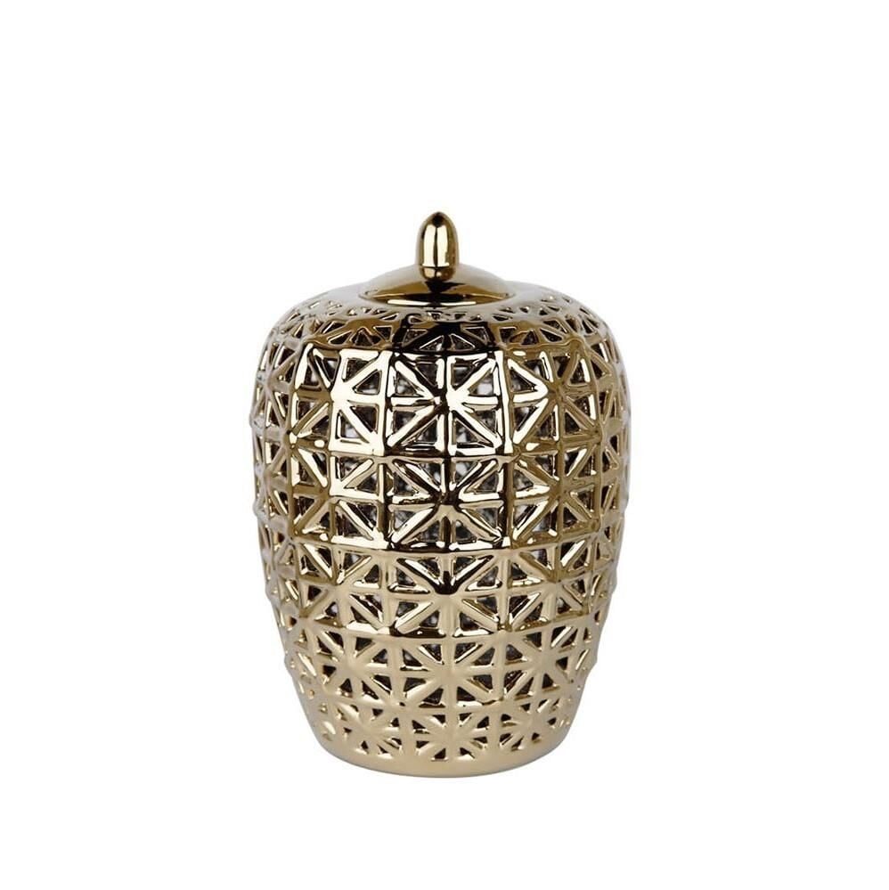 Lucky Art Gold Dantel Kapaklı Vazo 33 cm