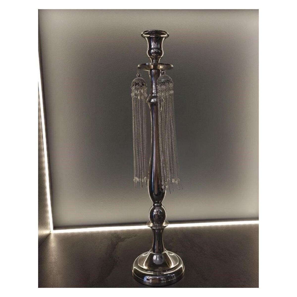 Lucky Art Gümüş Püsküllü Tekli Mumluk 45 cm