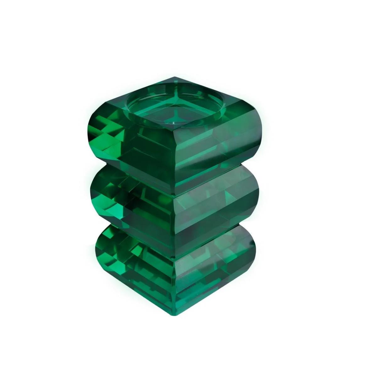 Lucky Art Kristal 3 Boğumlu Yeşil Mumluk 18cm