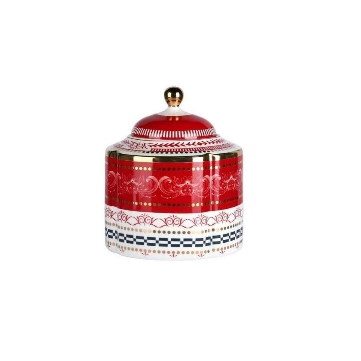 Lucky Art Lancelot New Bone China Porselen 18 cm Kavanoz zarif ve asil desenleriyle sofranıza kraliyet dokunuşu getiriyor. Klasik barok motifler, altın detaylarla harmanlanarak ihtişamlı bir görünüm sunuyor. New bone porselenin inceliğiyle buluşan bu tasarım, geleneksel şıklığı modern sofralara taşıyor.