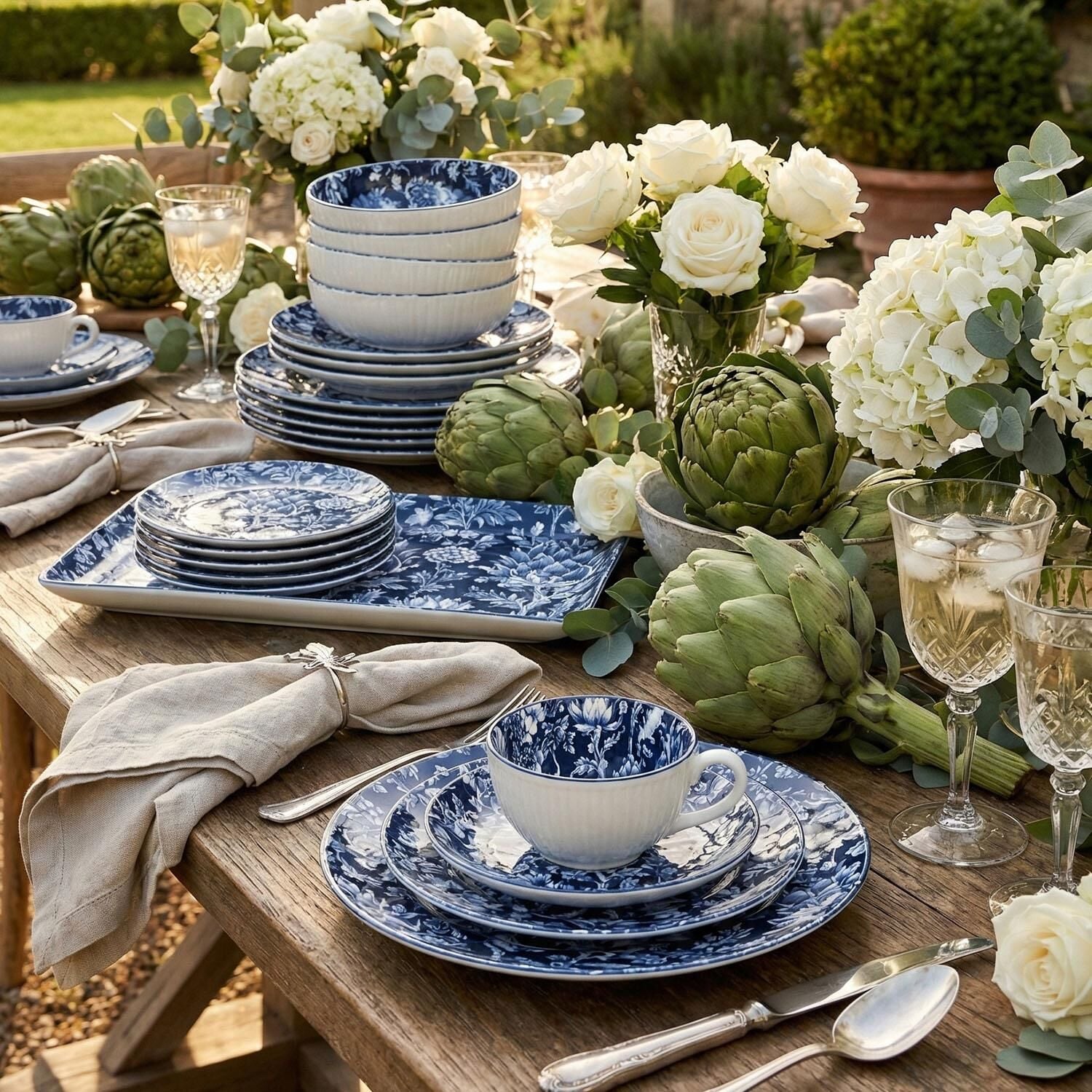 Mavi‑beyaz desenler ile bezeli bu sunum tepsisi, şıklığı ve zarif dokunuşlarıyla sofralarınıza zarafet katar. Klasik porselen motiflerinden ilham alarak tasarlanmış desenler, her türlü sunuma modern bir hava katacaktır.