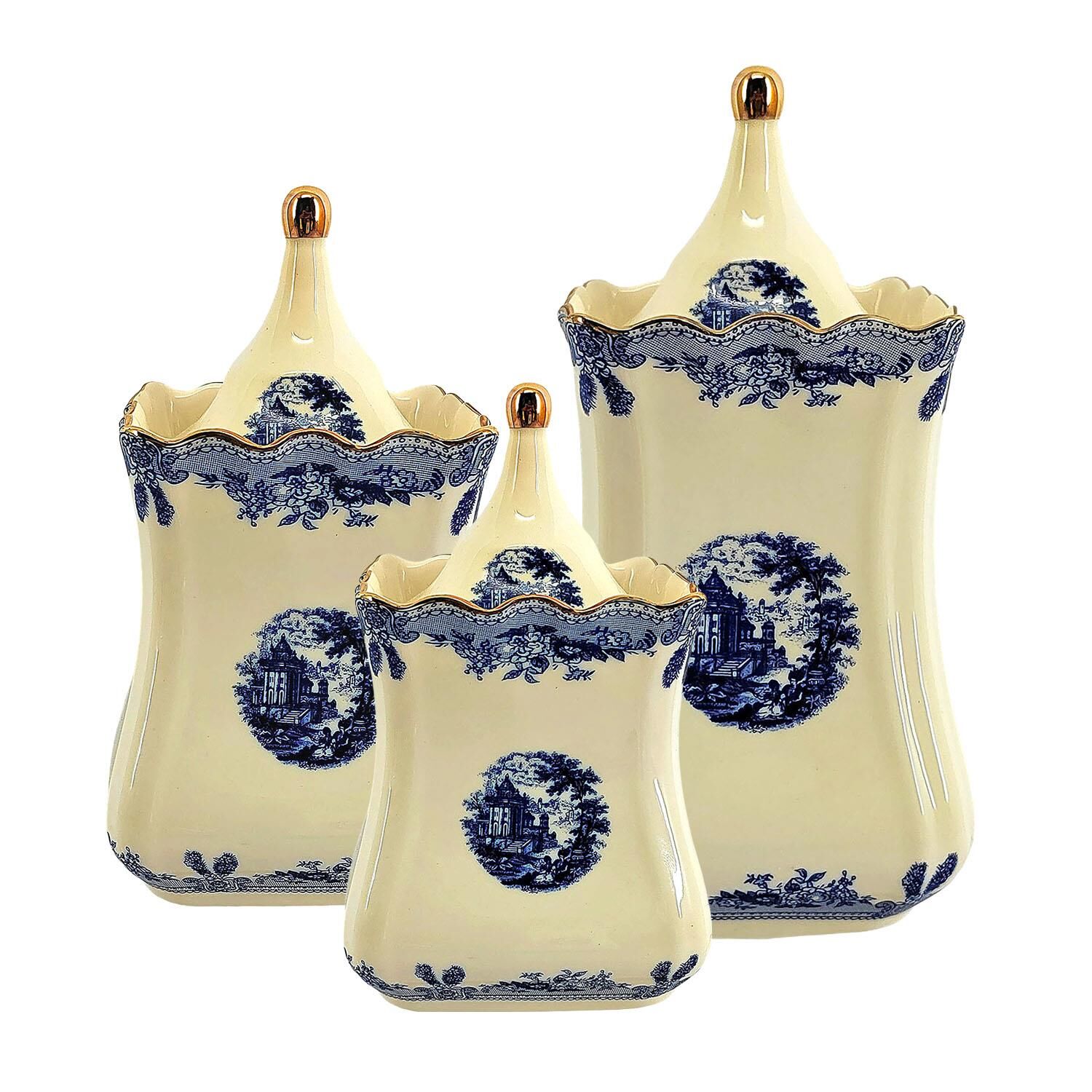 Margaret New Bone 3'lü Kavanoz Seti - Mavi Desenli Şıklık