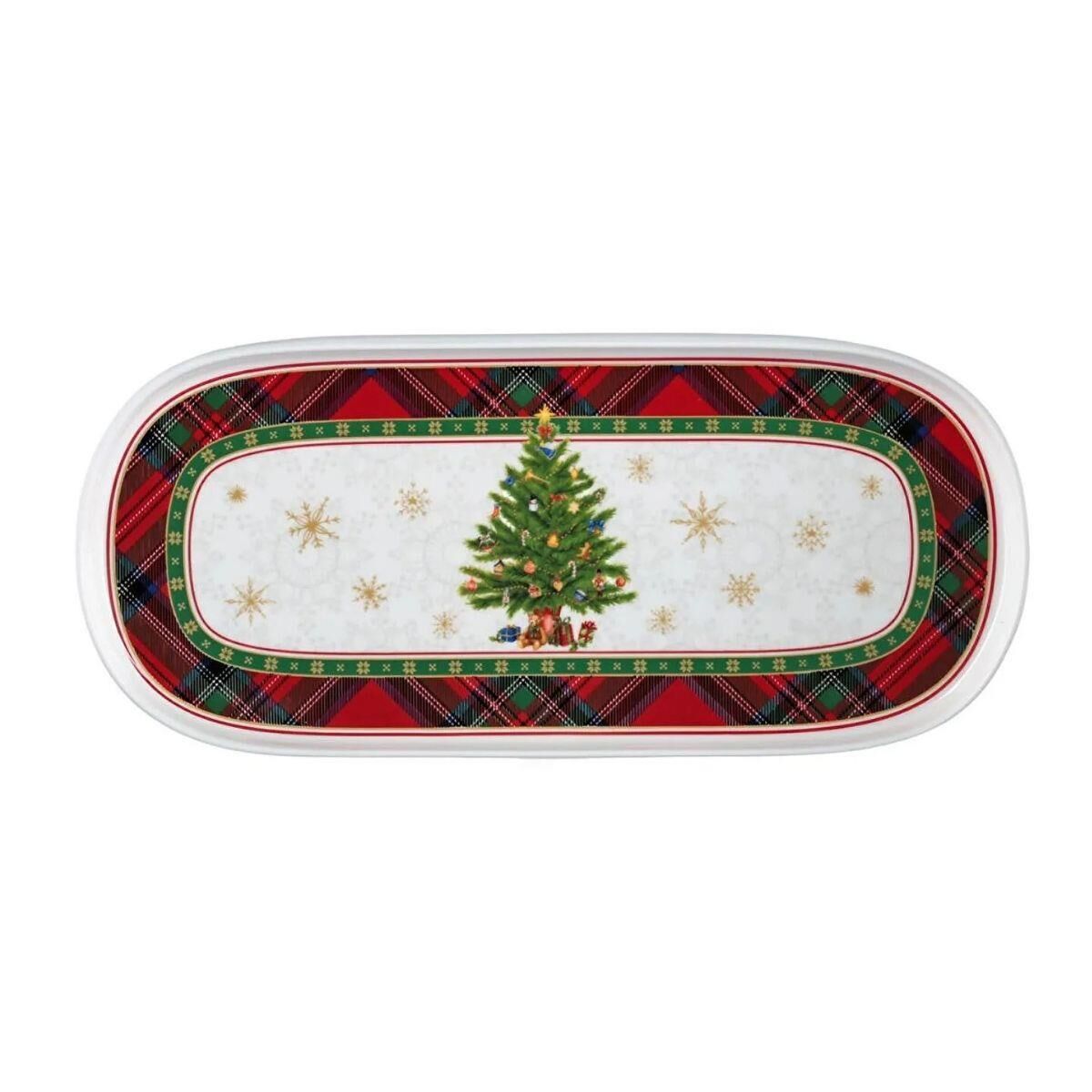 Merrilyn Tabağı, yılbaşı sofralarınızda fark yaratacak özel bir servis tabağıdır. 33 cm'lik geniş boyutu ve oval formuyla, kurabiye, pasta, kek veya mezelerinizi şık bir şekilde sunmanıza olanak tanır. En kaliteli Bone porselenden üretilen bu tabak, klasik ekose ve yılbaşı ağacı deseniyle misafirlerinizin beğenisini kazanacaktır. Ürün Özellikleri: Set İçeriği: 1 adet oval servis tabağı Boyut: 33 cm Malzeme: Bone porselen Kullanım: Sunum tabağı, pasta tabağı veya servis tabağı olarak kullanılabilir. Bakım: Elde yıkama önerilir. Desenler: Tabağın kenarları kırmızı ve yeşil ekose deseniyle çevrelenmiştir. Ortasında ise süslü bir yılbaşı ağacı figürü ve etrafında altın rengi yıldız desenleri bulunmaktadır. Teknik Bilgiler ve Dayanıklılık: Bone porselenin dayanıklı yapısı sayesinde tabak, günlük kullanıma ve sunumlara karşı dirençlidir. Renk solmasına ve çatlamaya karşı dayanıklı yapısı ile uzun yıllar keyifle kullanılabilir. Detaylar ve Kullanım Alanları: Bu zarif ve büyük tabak, yılbaşı sofranızın ana parçalarından biri olmaya adaydır. Özellikle rulo pasta (bûche de noël) gibi uzun tatlılar için idealdir. Aynı zamanda şık bir ev hediyesi arayışında olanlar için de mükemmel bir seçenektir. Merrilyn tabağıyla, tüm ikramlarınızı yılbaşı ruhuyla taçlandırın.