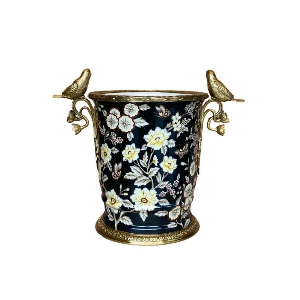 Zarif Tasarım: Siyah üzerinde çiçek motifleriyle işlenmiş porseleni, iç mekânlarda dikkat çekici bir kontrast ve şıklık yaratır.