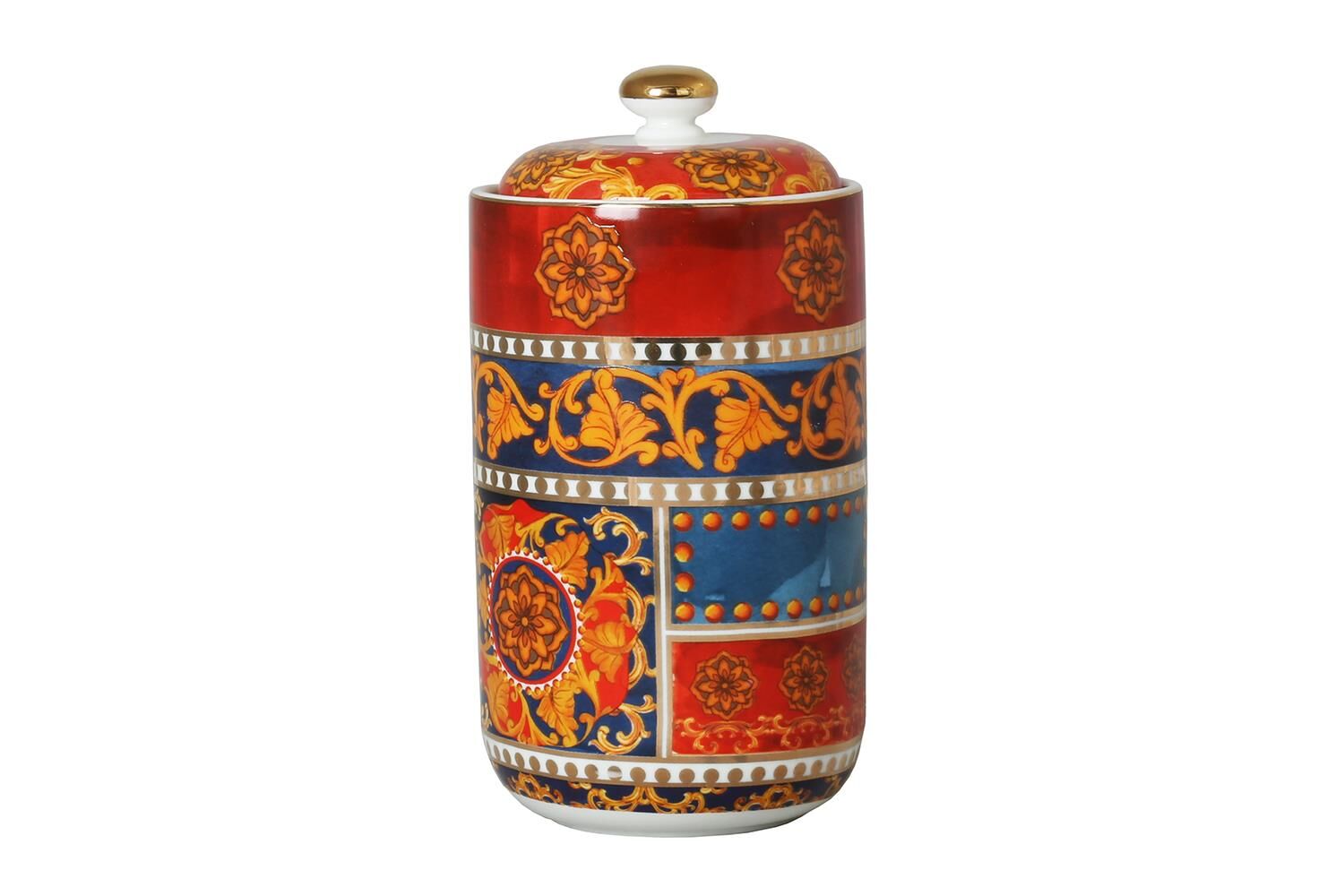 Lucky Art Clarissa Bone China Porselen Mavi Beyaz Naturel Barok Desenli Kapaklı Kavanoz 21 cm, estetik ve fonksiyonelliği bir arada sunar. Mavi ve beyaz tonlarındaki zarif barok desenler, şıklığı ve zarafeti sofralarınıza taşır. 21 cm boyutundaki kapaklı kavanoz, saklama ihtiyacınızı şık bir şekilde karşılamak için ideal olup, mutfakta veya dekoratif amaçlarla kullanılabilir. Dayanıklı ve kaliteli Bone China porselen malzeme, uzun ömürlü kullanım sağlar ve kolayca temizlenebilir. Bu zarif kavanoz, modern ve geleneksel tarzları birleştirerek evinize estetik bir dokunuş katar ve her ortamda şık bir detay olarak dikkat çeker.