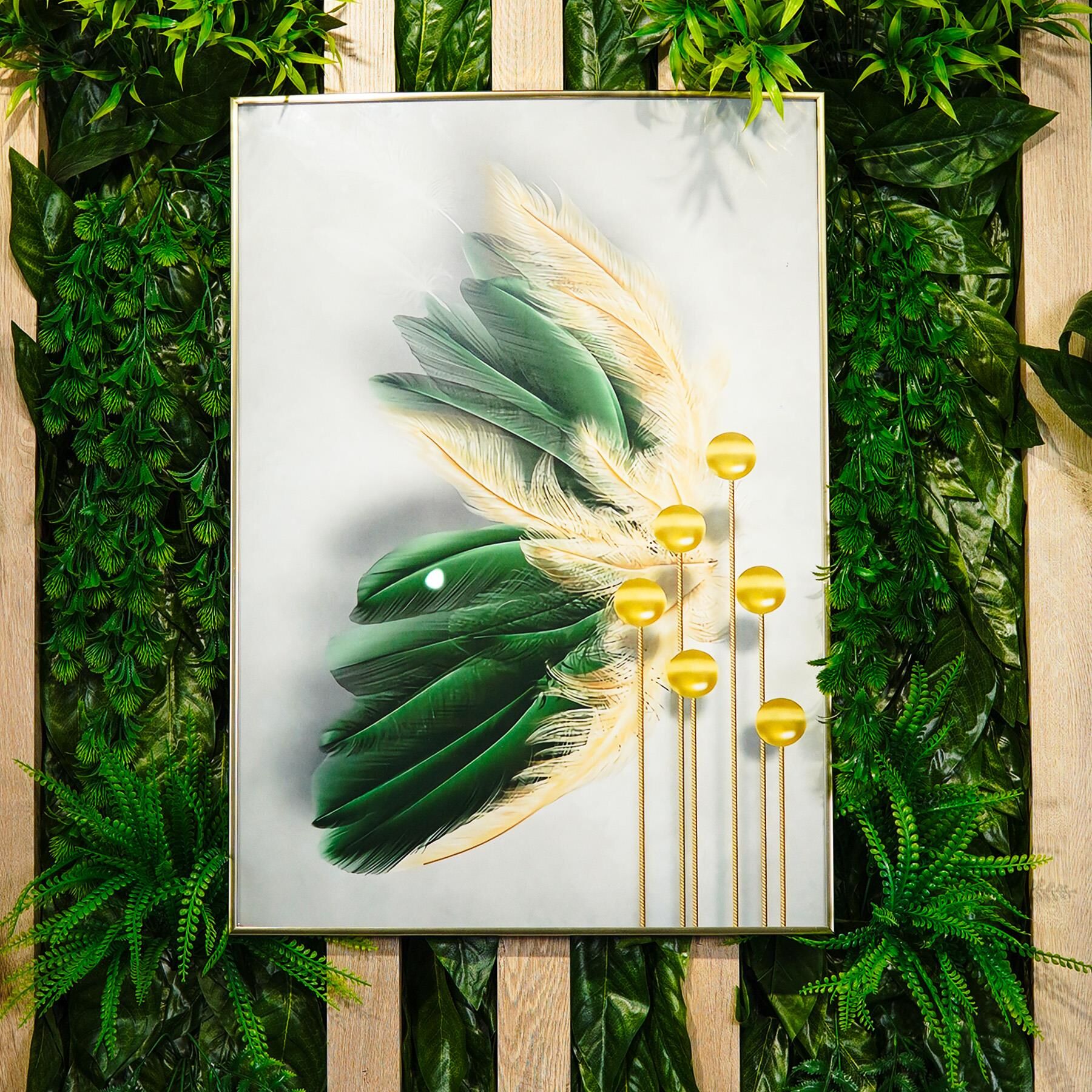 Magic Home Mauritz Yeşil Sarı Tüy Desenli 50 X 70 Cm Tablo 047