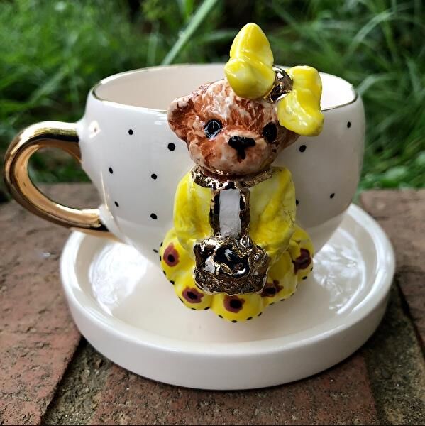 Magic Home Teddy Puantiyeli Gelin Seramik Fincan Sarı