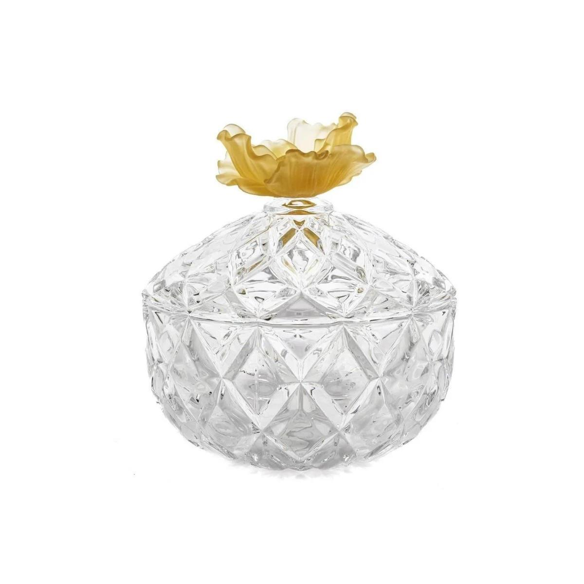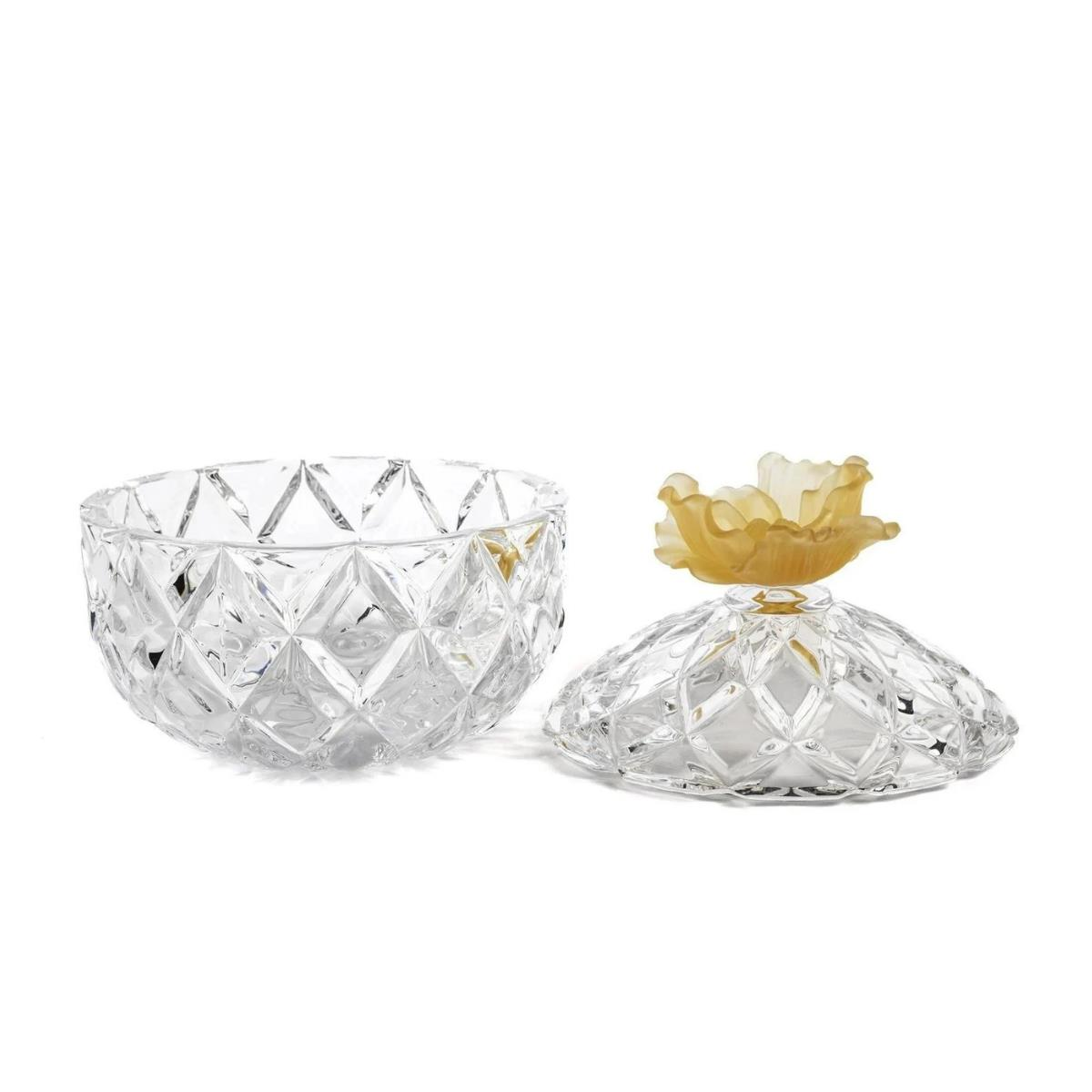 Mikasa Moor Amber Çiçekli Kapaklı Cam Şekerlik 19x19cm