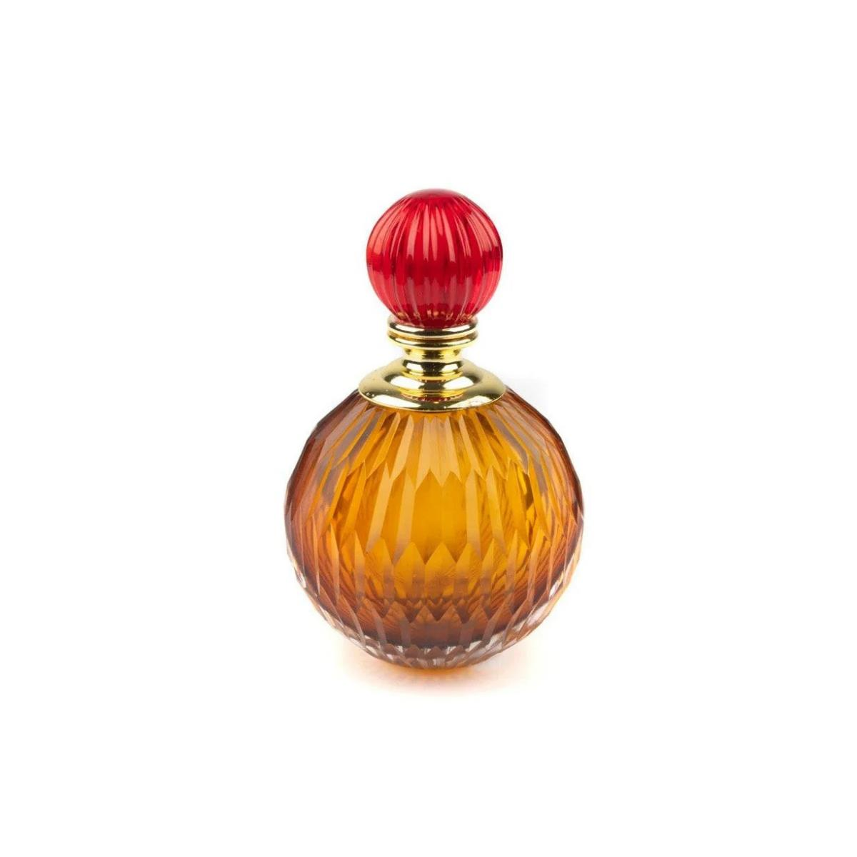 Zarif ve dekoratif tasarımıyla öne çıkan bu parfüm şişesi, amber & kırmızı cam birleşimiyle hem vintage hem modern bir hava taşır. 8x13 cm boyutlarıyla lavabo, makyaj masası veya raf dekoru için ideal boyuttur.