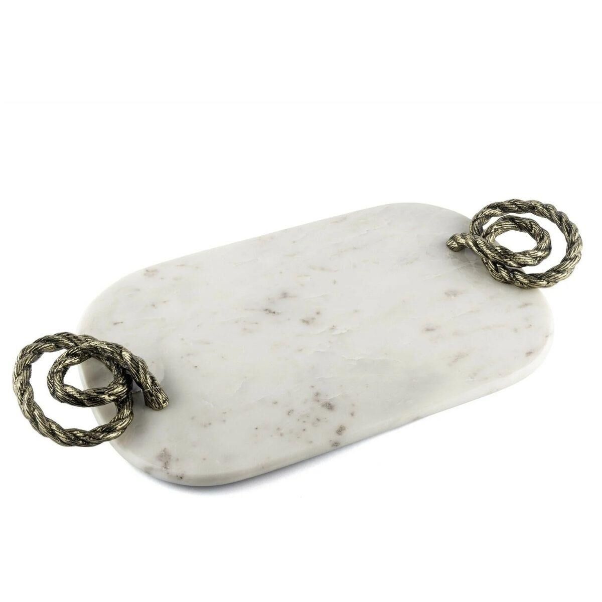 Mikasa Moor Bronz Halat Kulplu Beyaz Mermer Oval Tepsi 58x28cm
