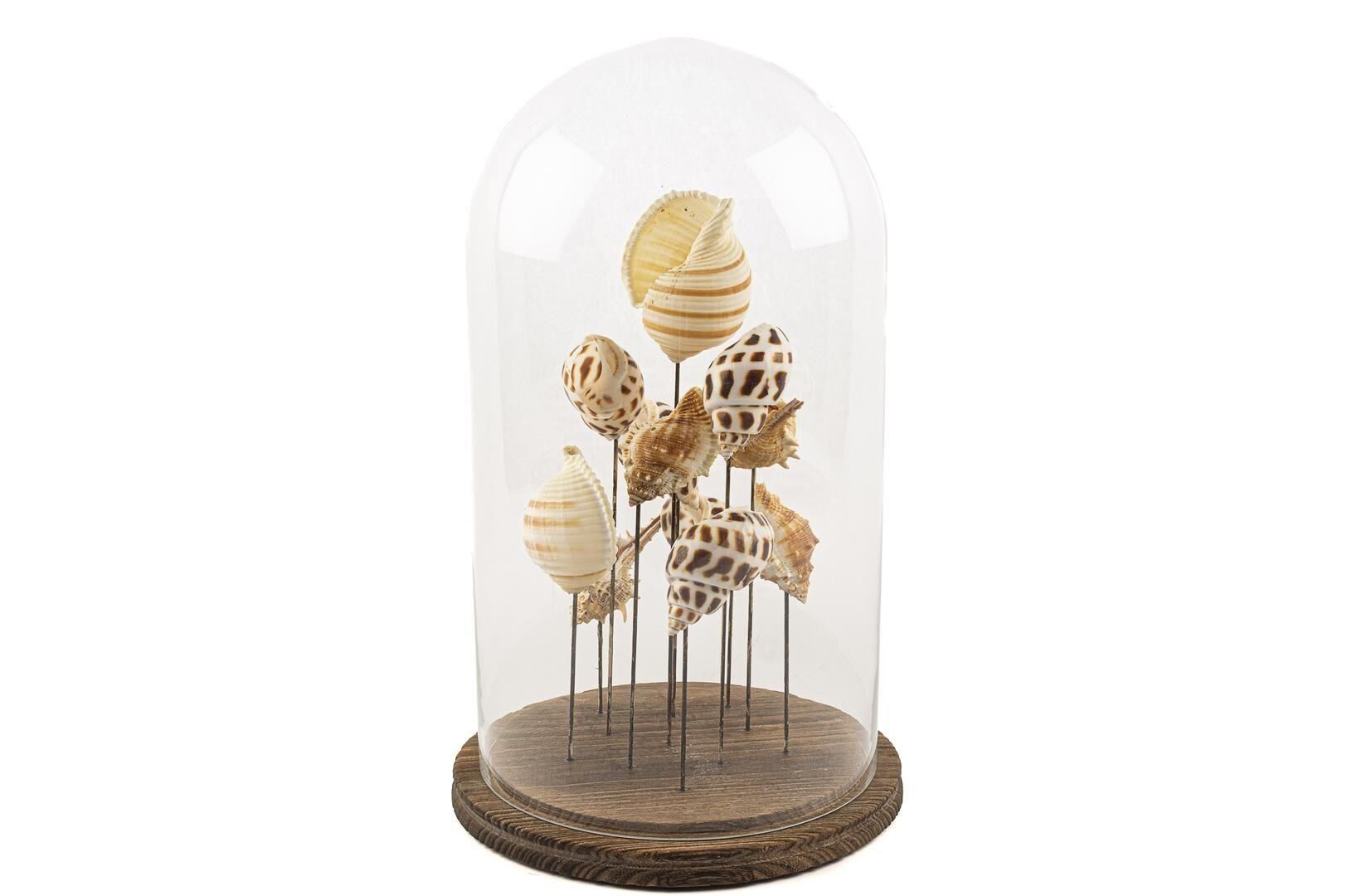 Mikasa Moor Ceviz Standlı Deniz Kabuğu Yuvarlak Cam Fanus 22,5x38cm