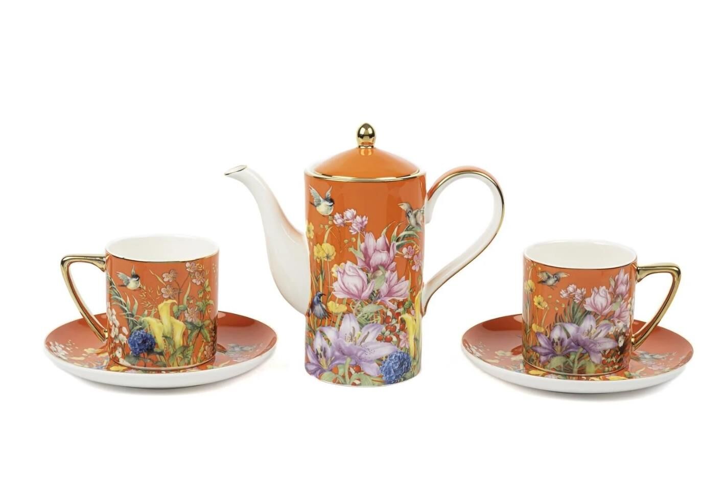 Mikasa Moor Garden Turuncu 2 li Duble Kahve Seti ve Demlik 200CC