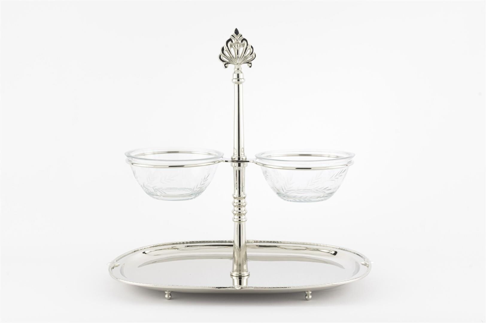 Mikasa Moor Gümüş 2’li Cam Dip Soslu Oval Sunumluk 35x25x33cm