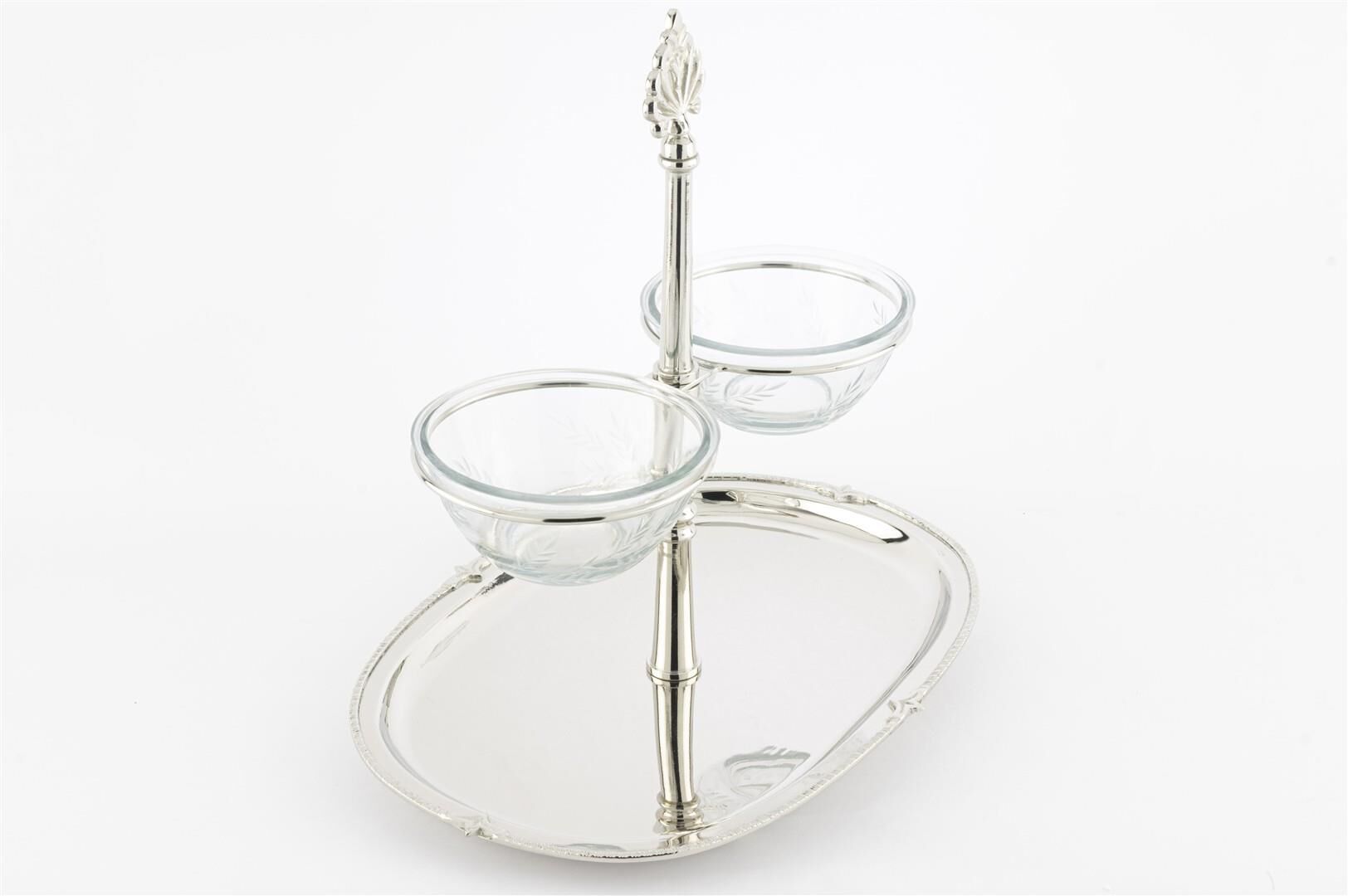 · Detay: Zarif gümüş kaplamalı çerçeve ve dip sos kabı.