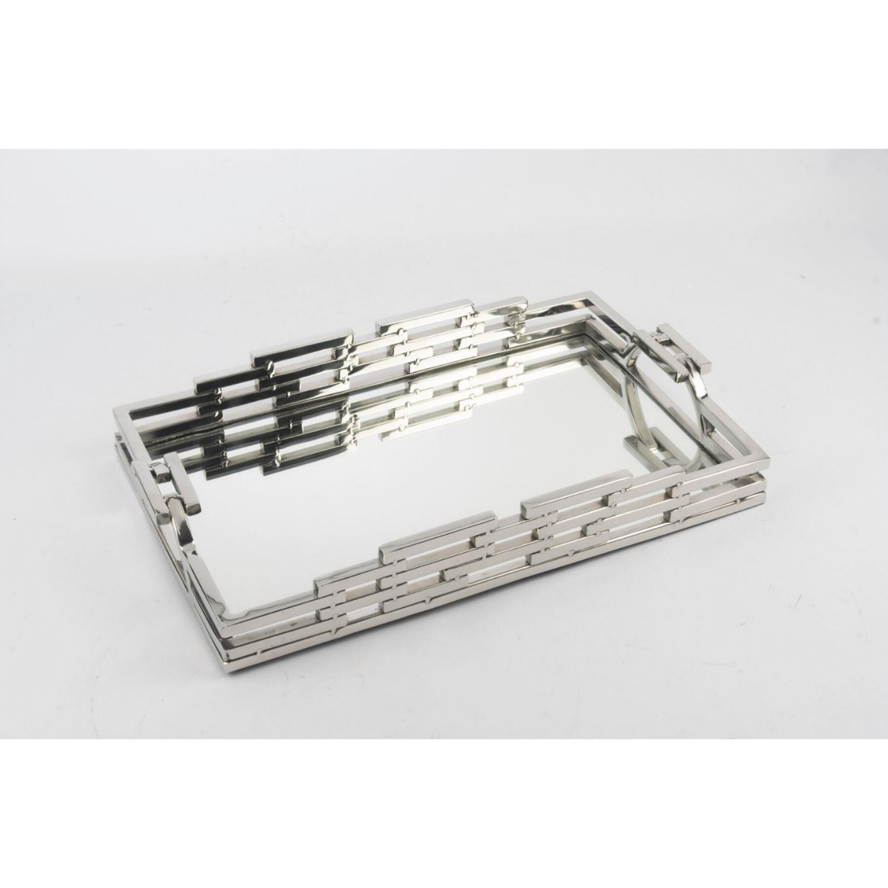 Gümüş Zincir Aynalı Tepsi 26x44x6cm – Şıklık ve Zarafetin Mükemmel Uyumu
