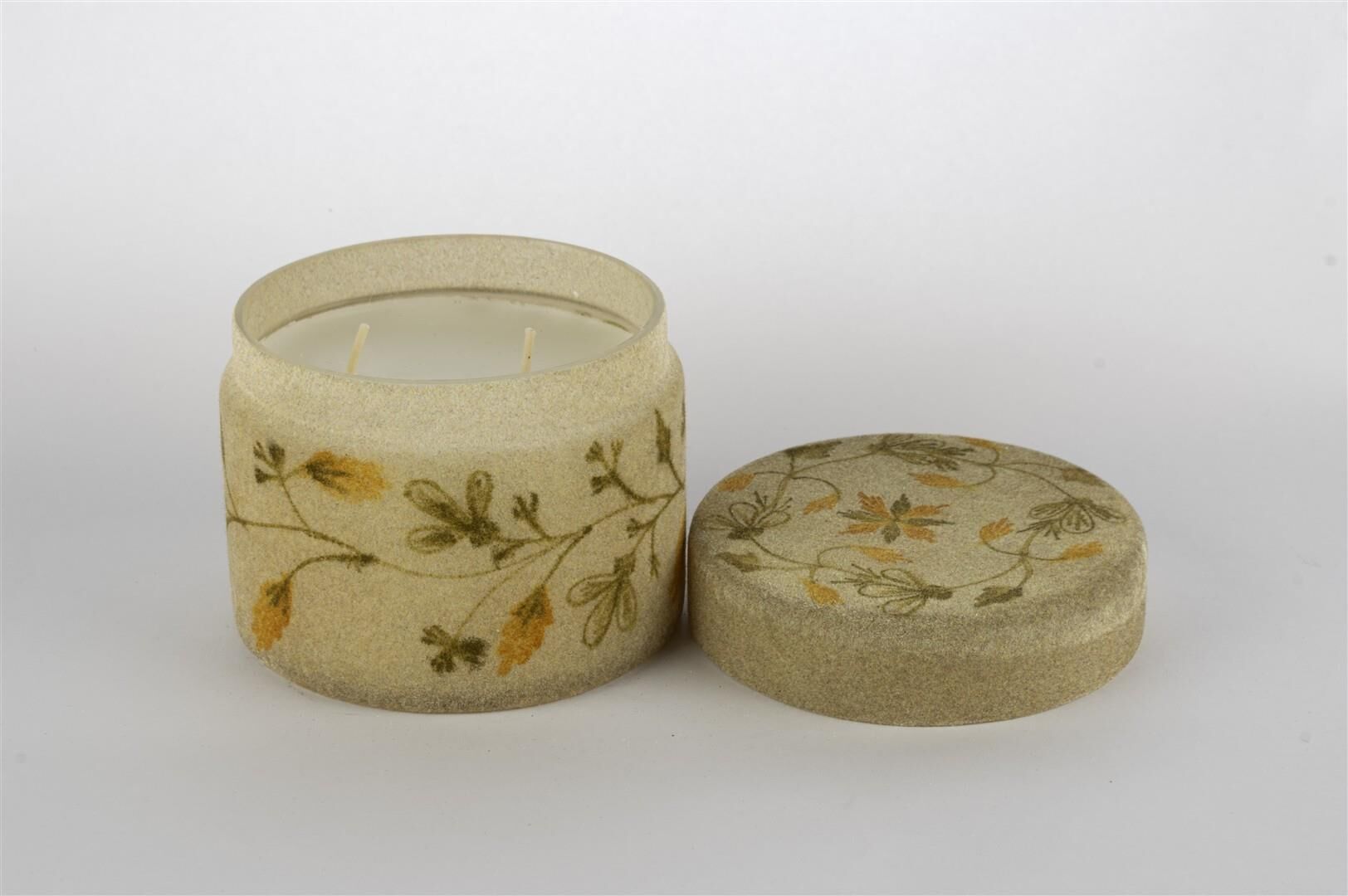 Mikasa Moor Krem Kadife Çiçekli Cam Mum Bergamot 11x19cm