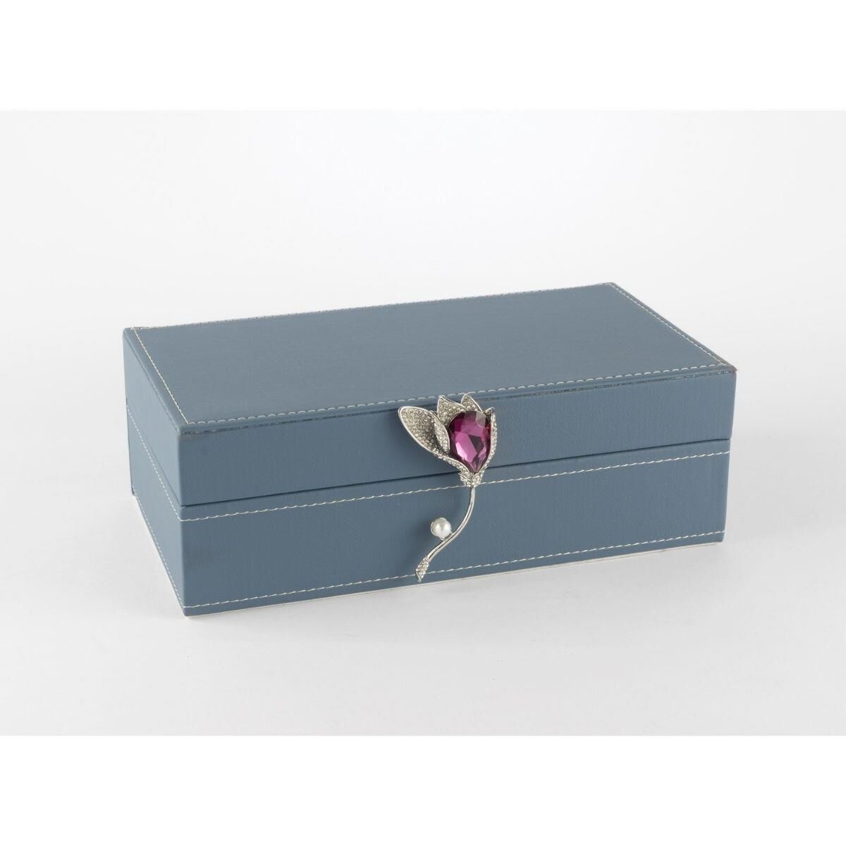 Mikasa Moor Mavi Çiçek Kulplu Deri Kutu 25x14x9cm