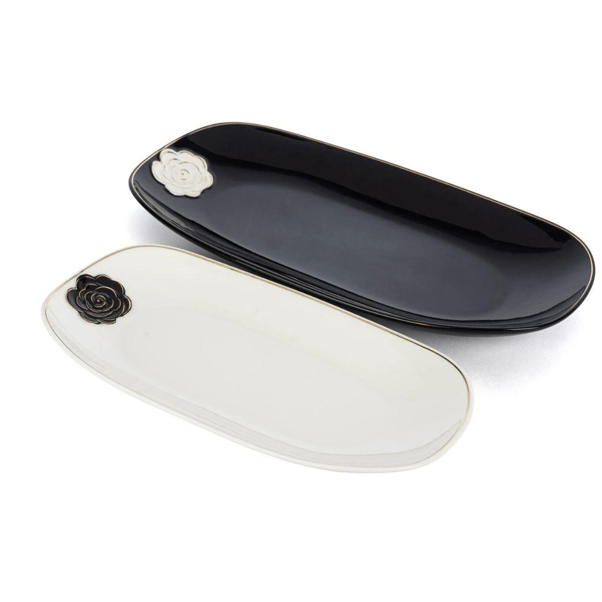 Rosaria Siyah Beyaz 2li Oval Tabak 13x26cm-35x15cm