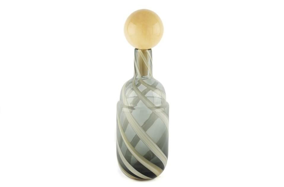 Mikasa Moor Yeşil Krem Çizgili Kapaklı Cam Vazo 12x39cm
