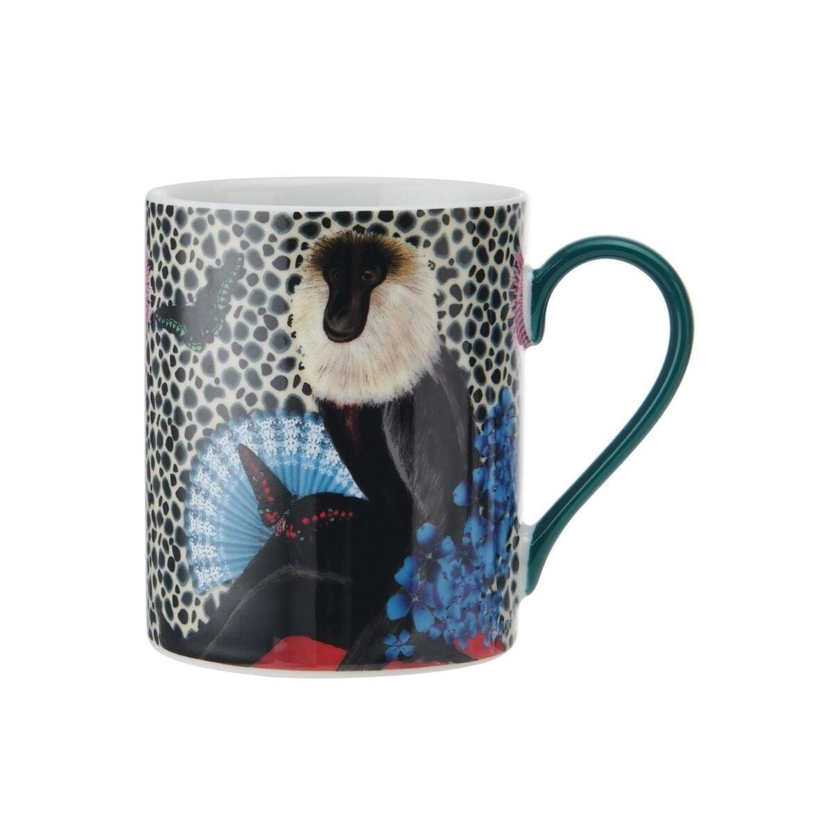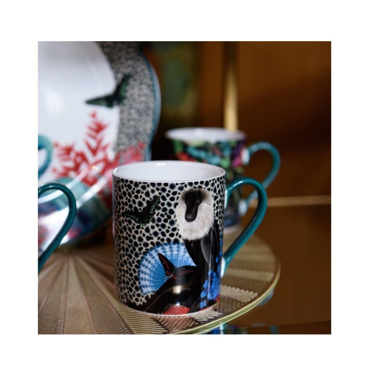 Bitki örtüsü ve hayvanlardan oluşan bir fonun ortasında canlı bir maymun baskısıyla dekore edilmiş bu ürün, herhangi bir yemek masasına veya çay servisine dramatik bir çekicilik dokunuşu katacak.