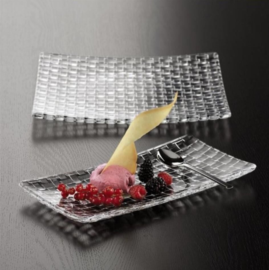 Nachtmann’ın ikonik Bossa Nova koleksiyonuna ait bu 28 cm’lik dikdörtgen servis tabağı, zarif örgü desenli yüzeyi ve kristal cam kalitesiyle sofralarınıza modern bir dokunuş katar. Sunumlarınızda şıklık ve işlevselliği bir arada sunar.