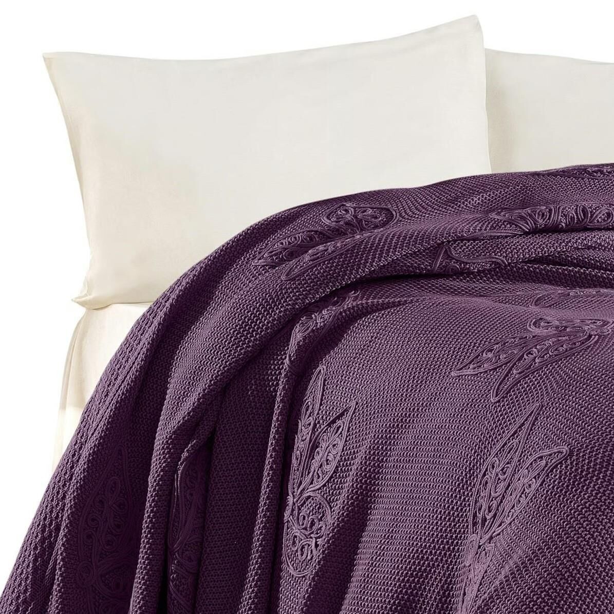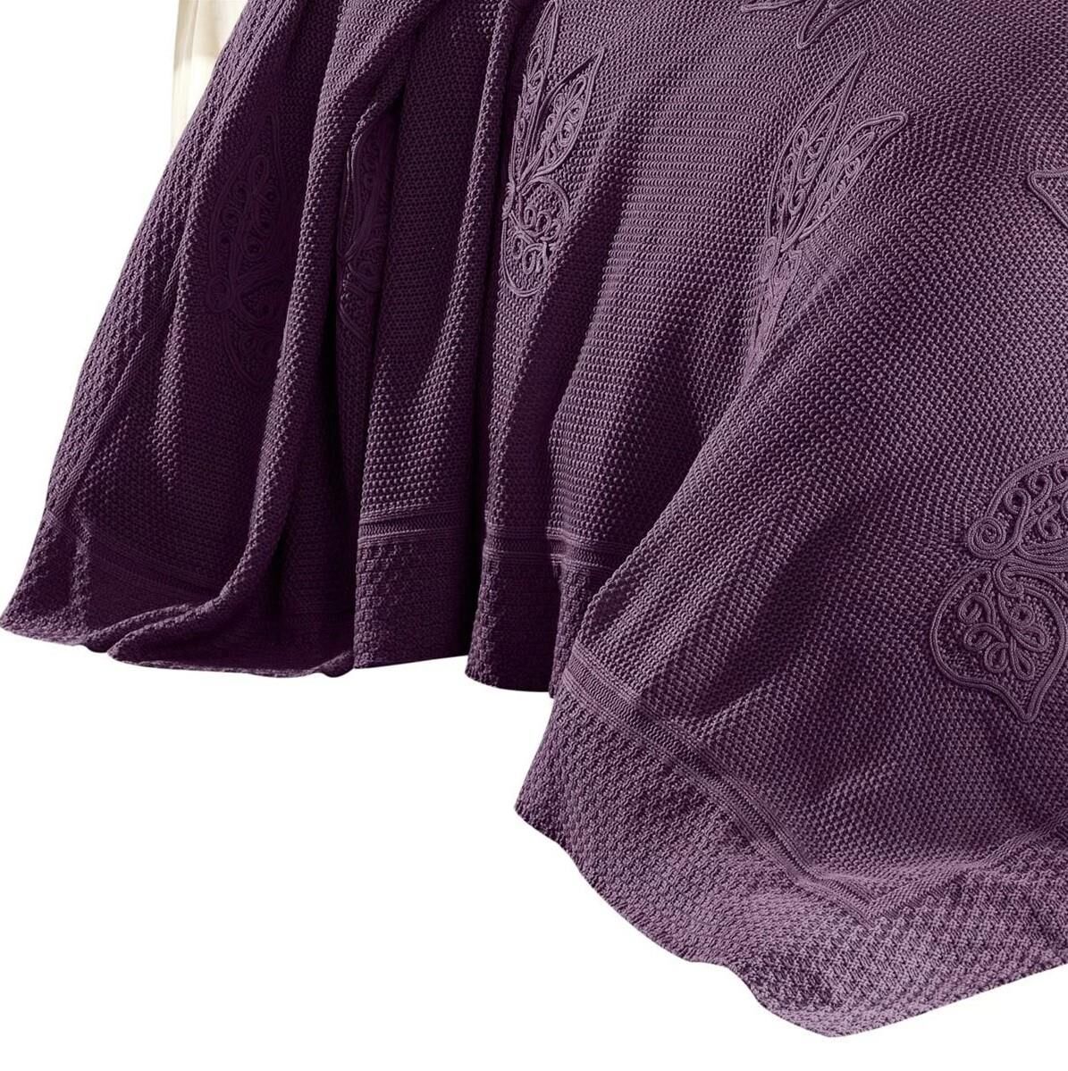 Nazik Home Alegra El Yapımı Triko Nakışlı Battaniye Mürdüm Çift Kişilik