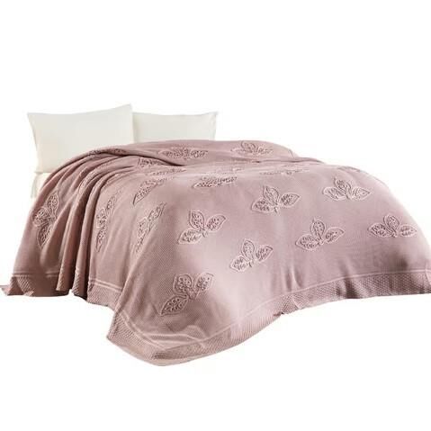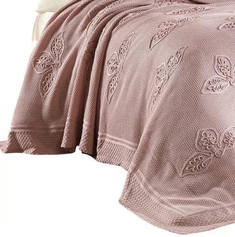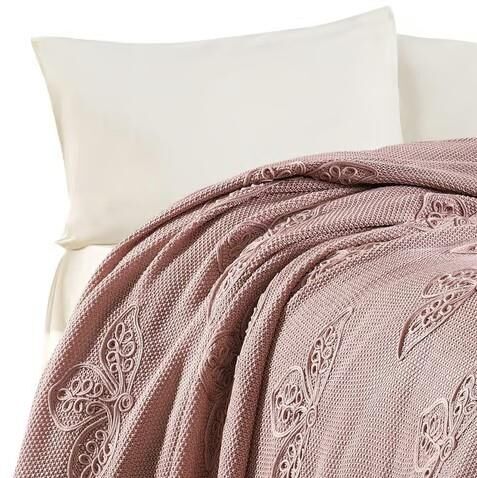 Nazik Home Alegra El Yapımı Triko Nakışlı Battaniye Pudra Çift Kişilik