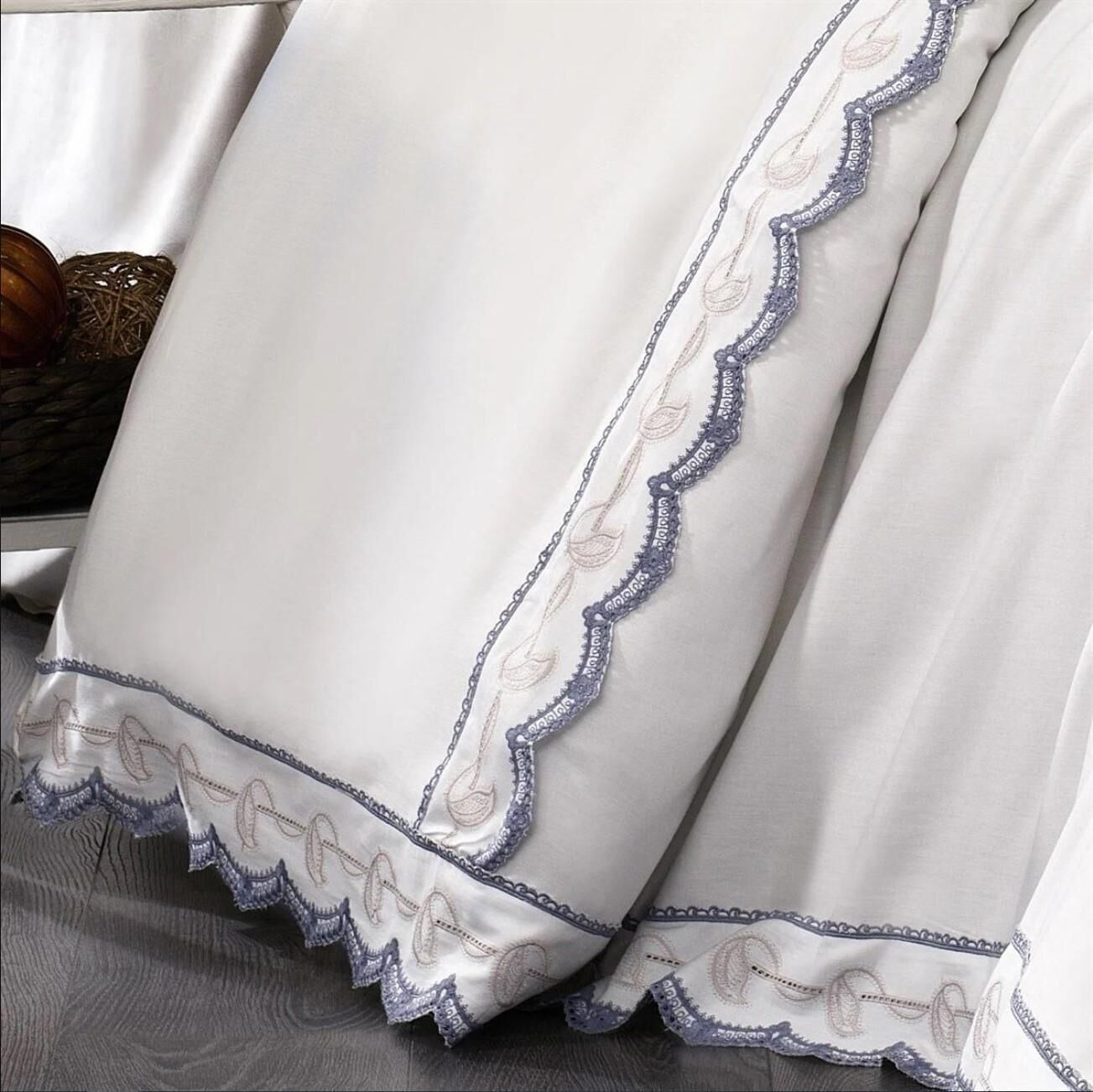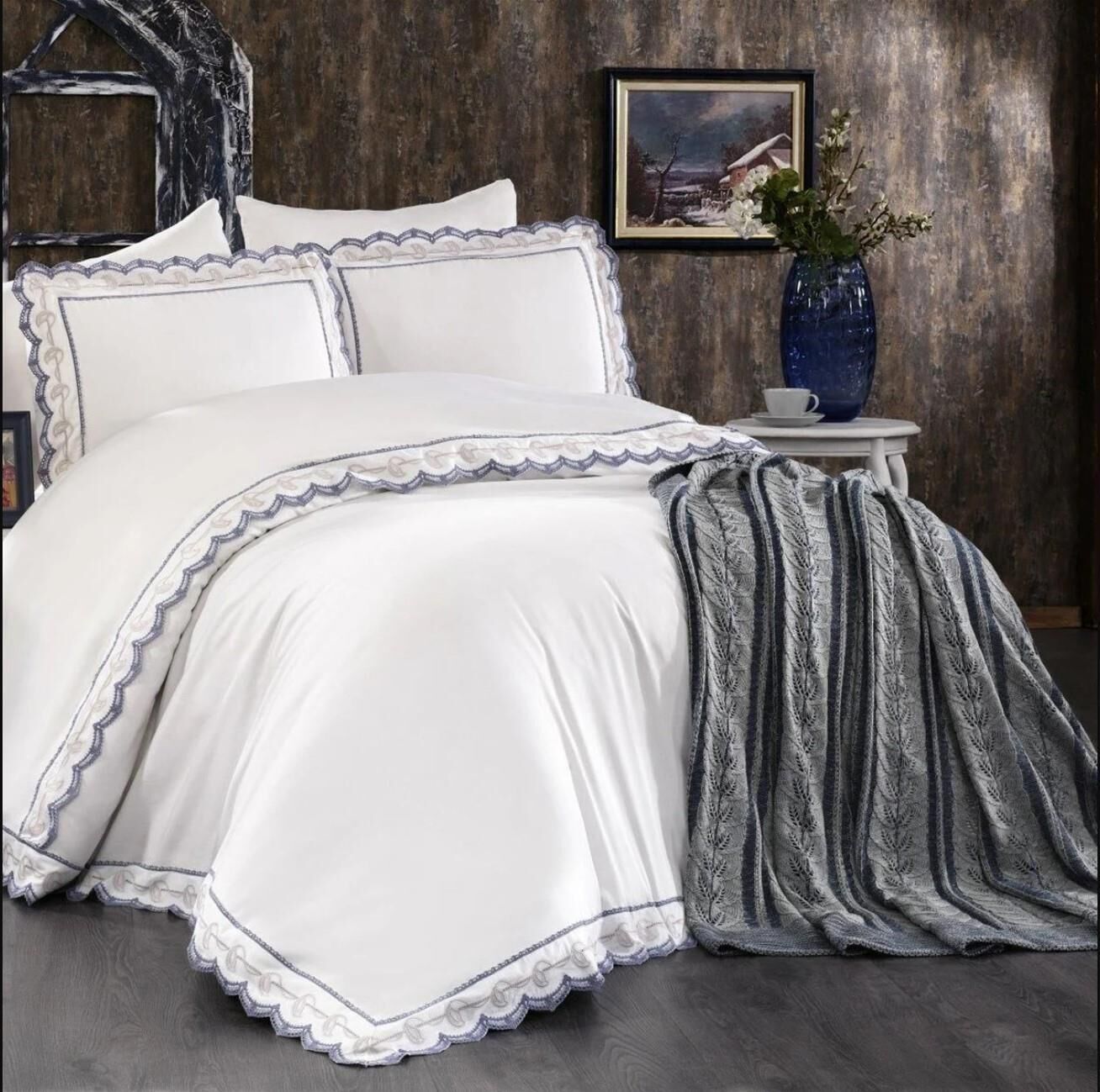 Nazik Home Azra Dantelli Nevresim Takımı Triko Battaniye 7 Parça Seti Beyaz Çift Kişilik