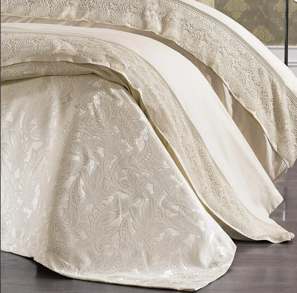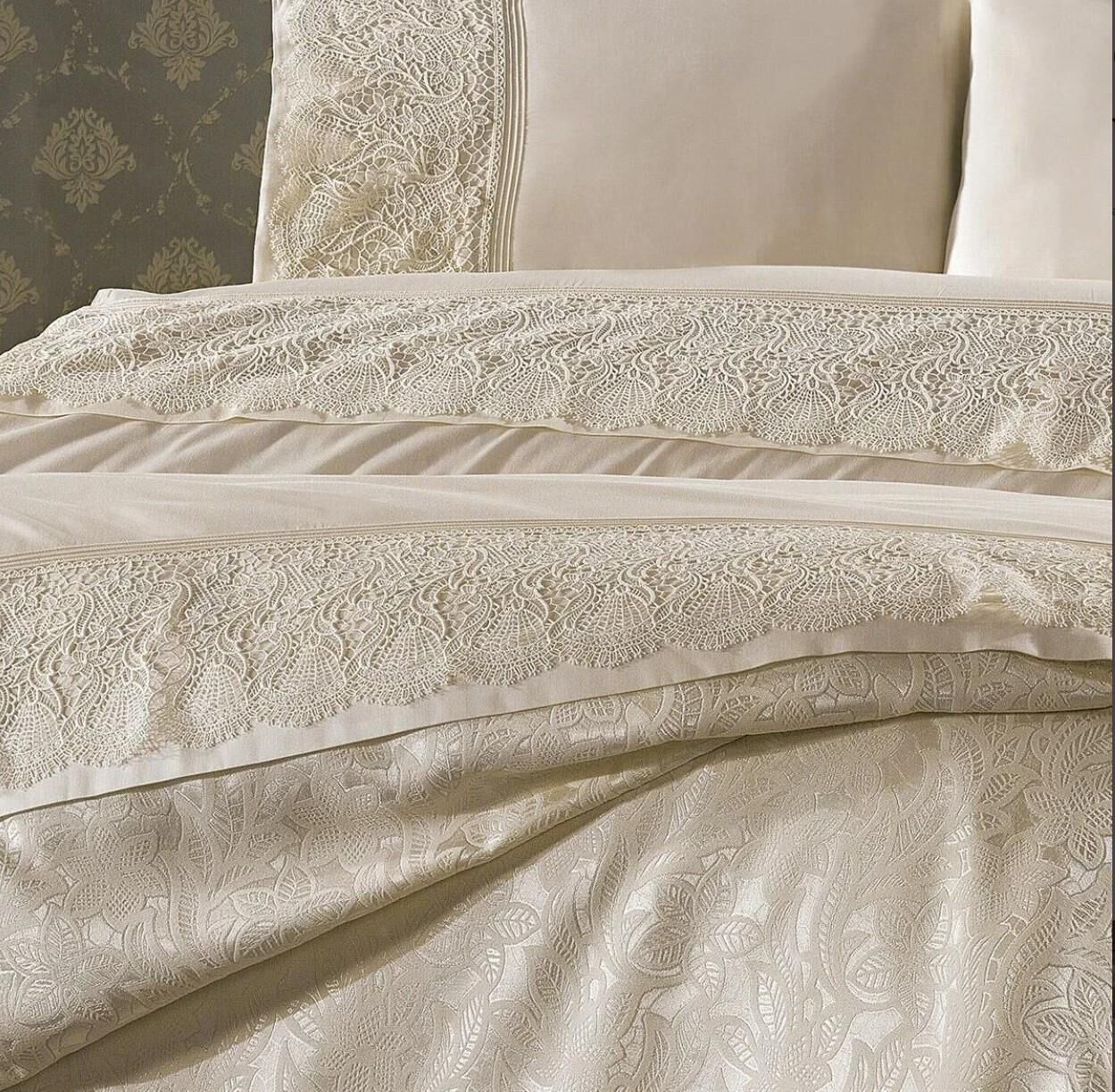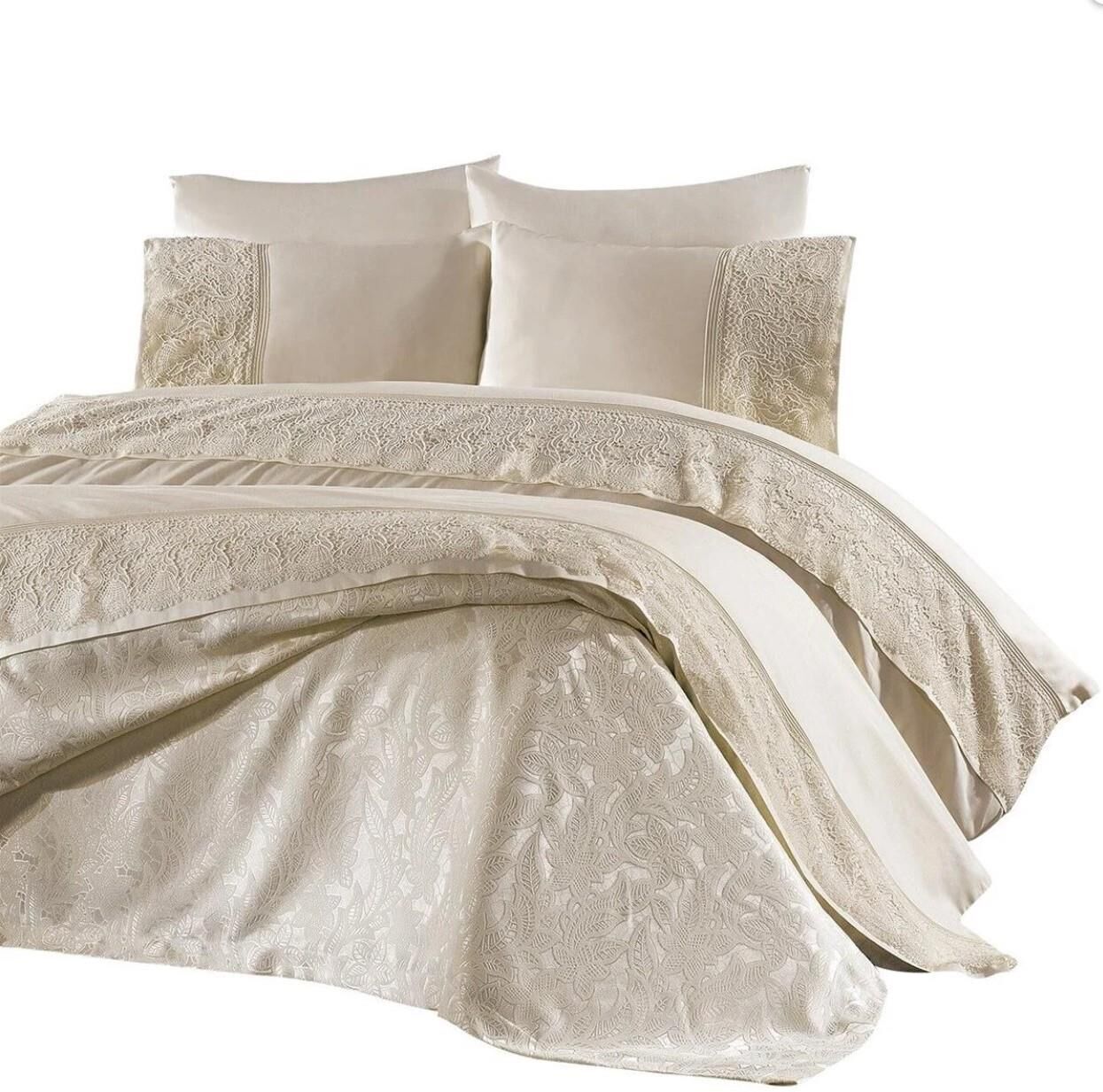 Nazik Home Blenda Dantelli Nevresim Takımı ve Pike 7 Parça Seti Bej Çift Kişilik