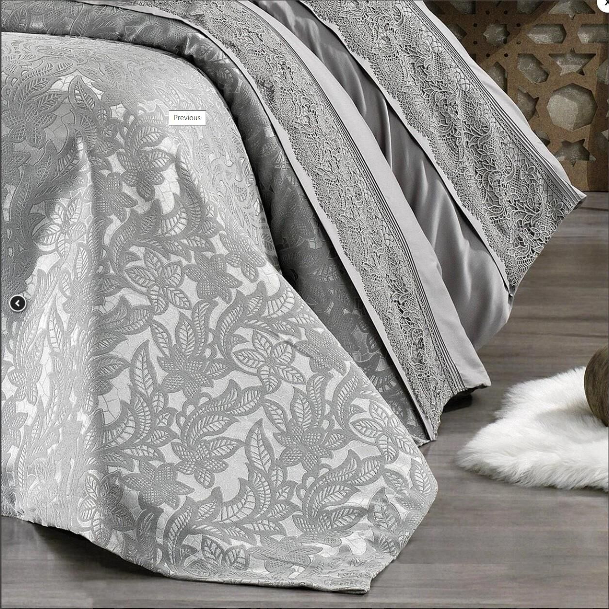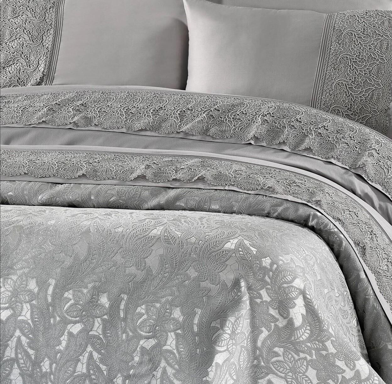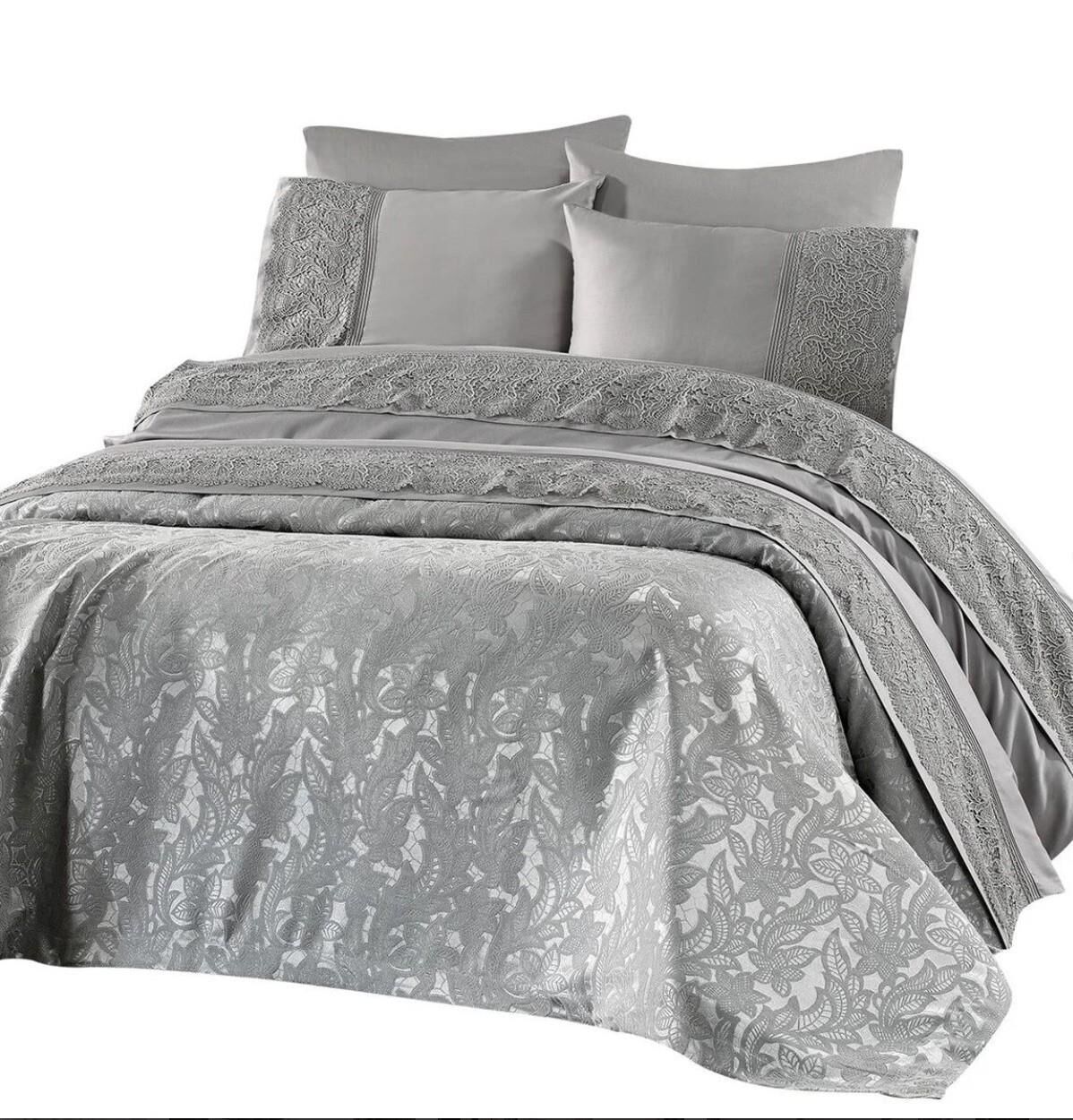 Nazik Home Blenda Dantelli Nevresim Takımı ve Pike 7 Parça Seti Gri Çift Kişilik