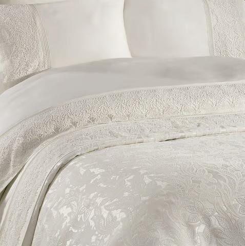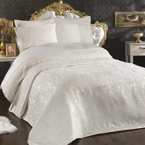 Nazik Home Blenda Dantelli Nevresim Takımı ve Pike 7 Parça Seti Krem Çift Kişilik