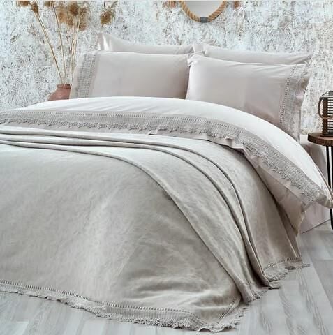Nazik Home Cadiz Nevresim Pike Seti Vizon Çift Kişilik