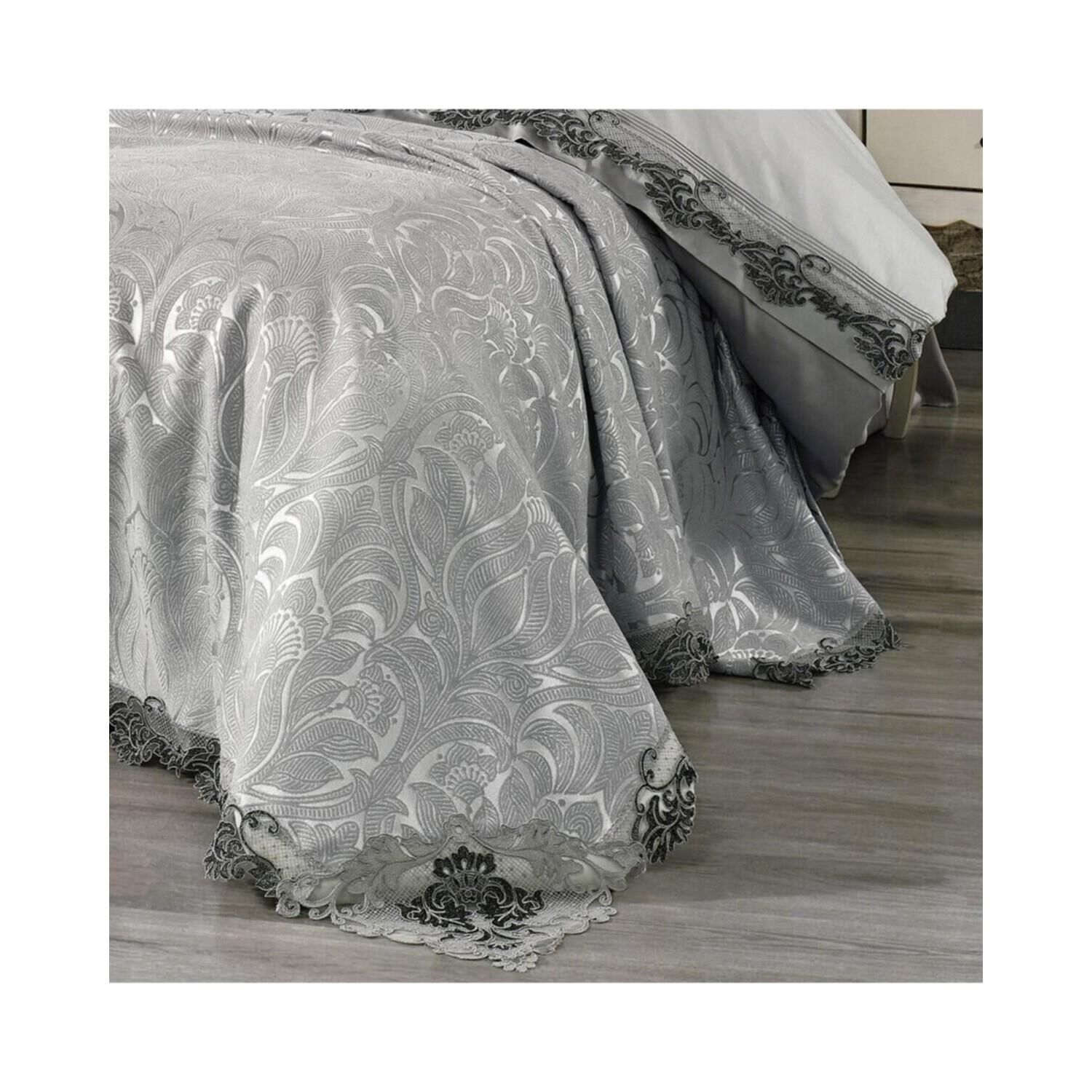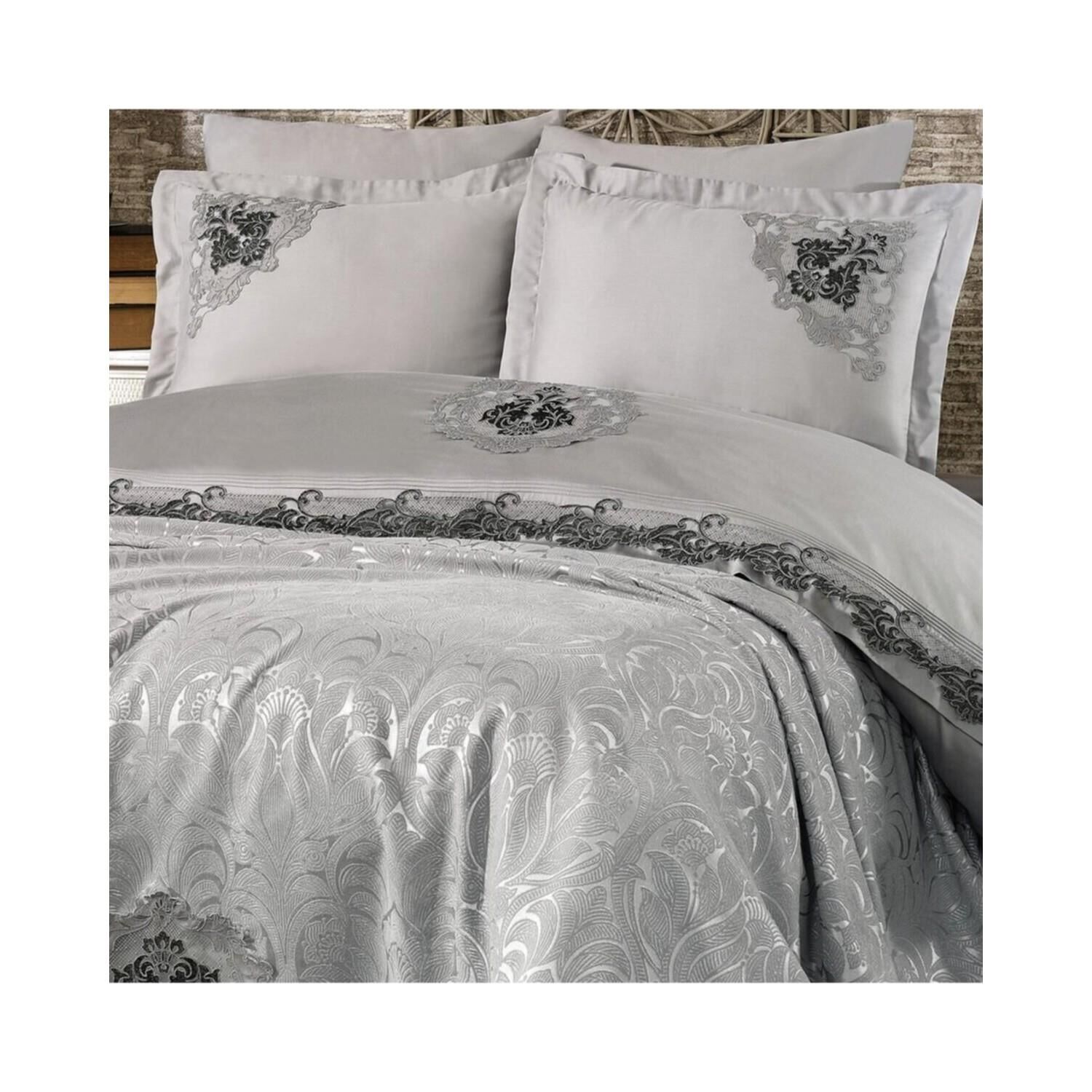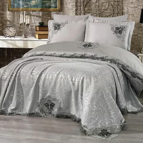Nazik Home Carina Dantelli Nevresim Takımı Ve Pike 7 Parça Seti Gri Çift Kişilik
