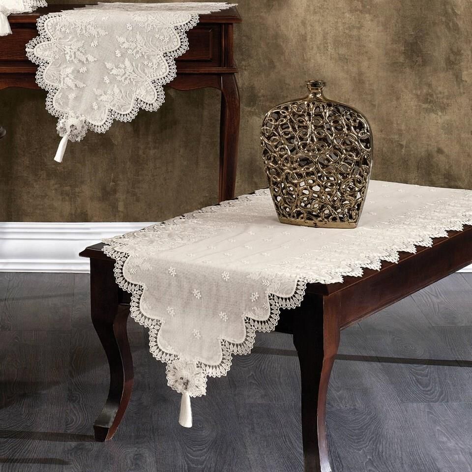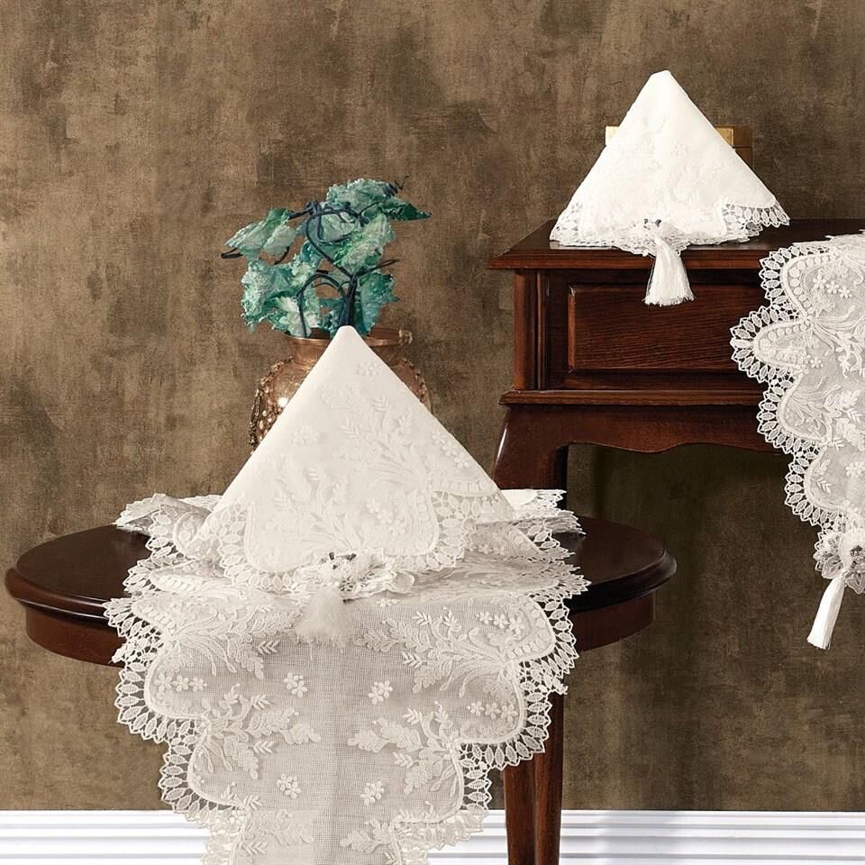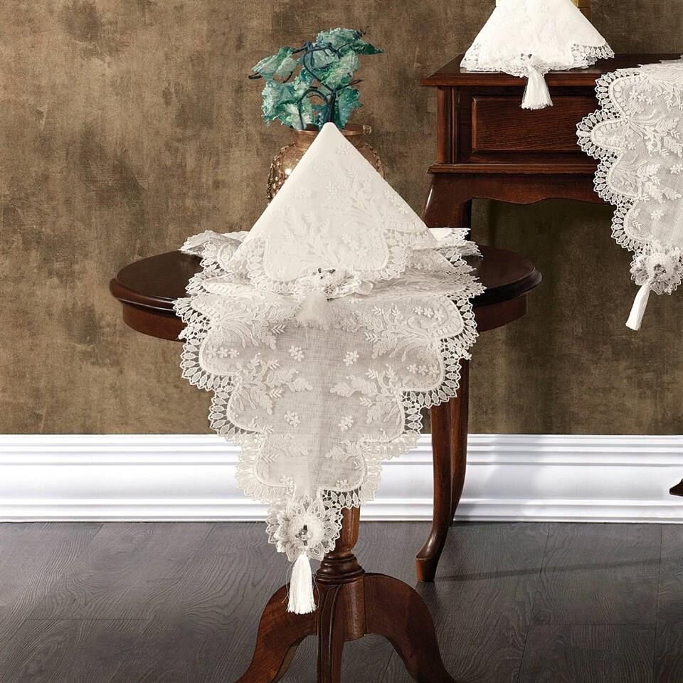 Nazik Home Clara Dantelli Leke Tutmaz 5 Parça Salon Oda Takımı Bej STD