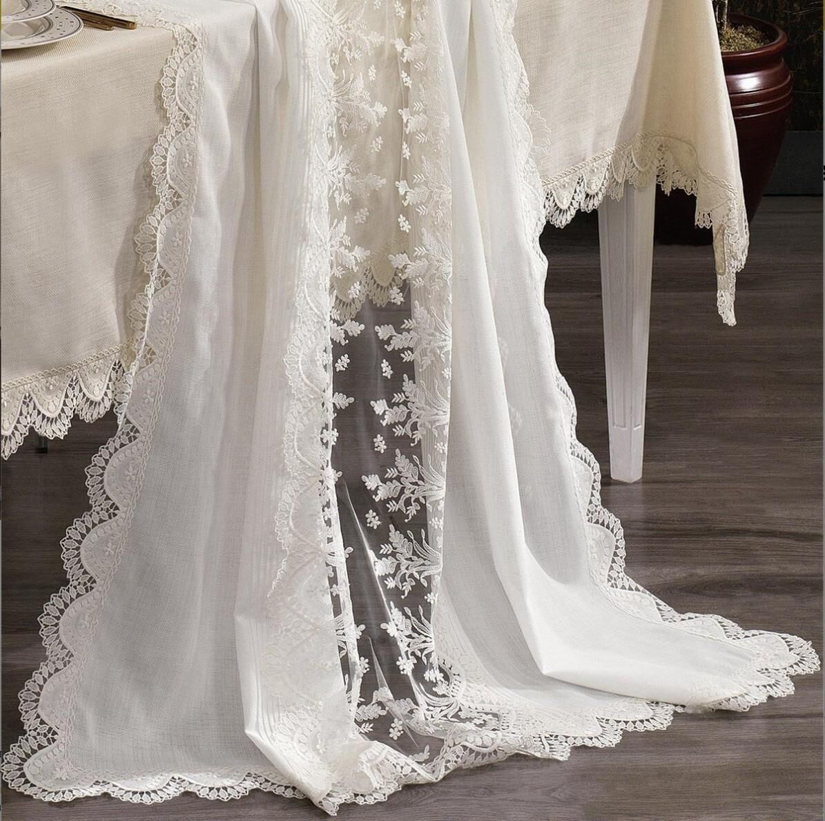 Nazik Home Clara Dantelli Masa Örtüsü 160x260 cm-Krem