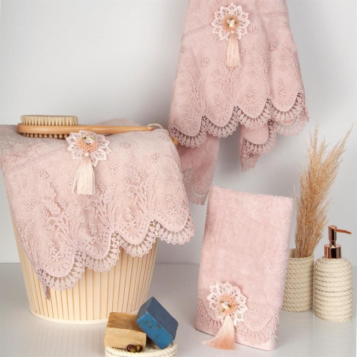 Nazik Home Clara Dantelli Ve Süslü Havlu Pudra 90X150