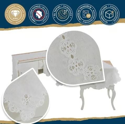 Nazik Home Doria Dantelli Leke Tutmaz 5 Parça Salon Oda Takımı Krem Standart