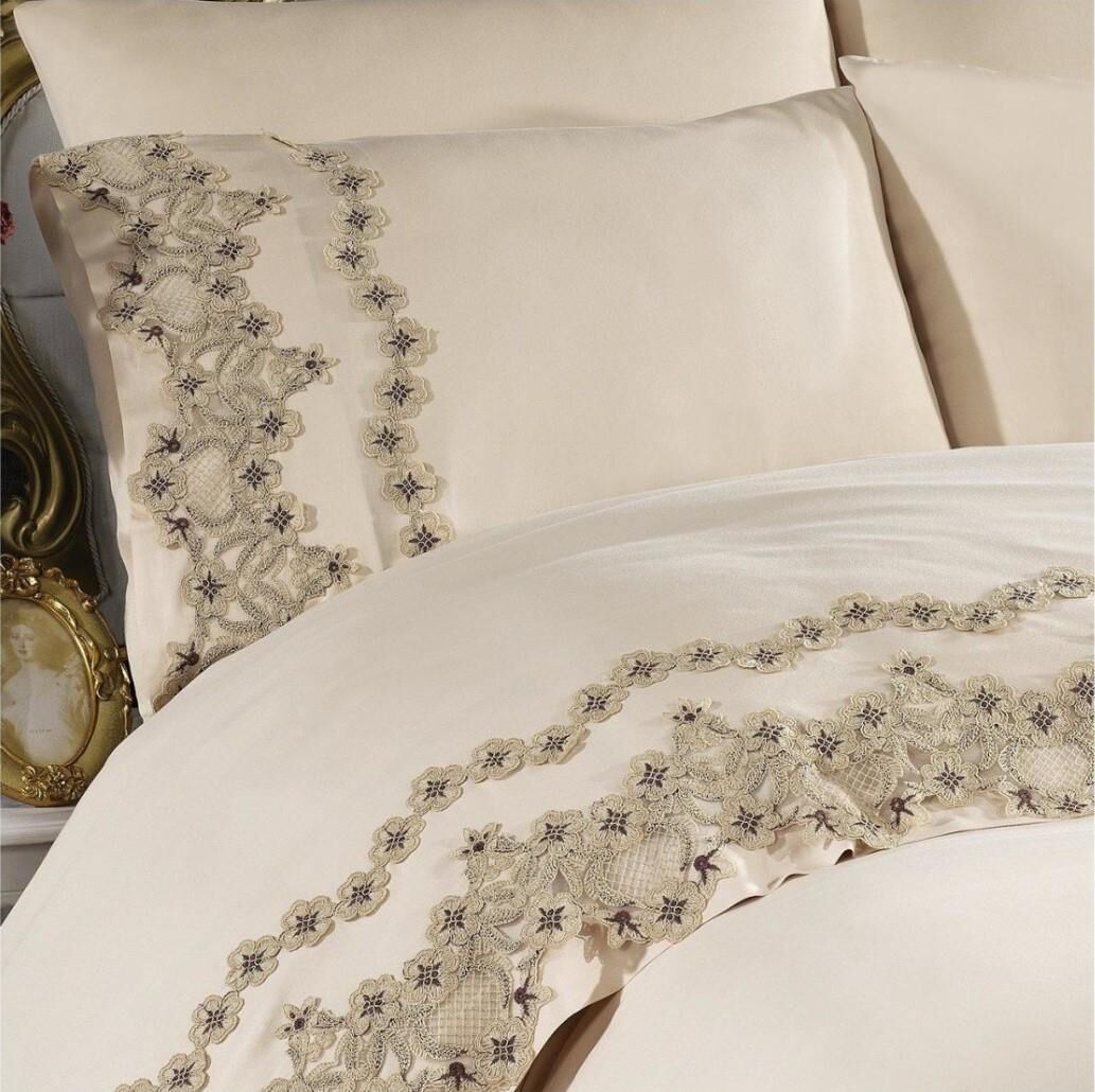 Nazik Home Elegance Dantelli Nevresim Takımı Bej CK