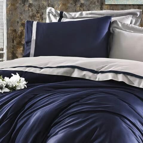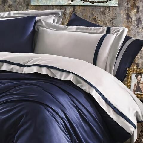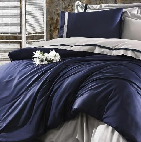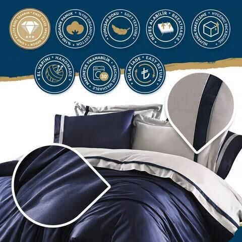 Nazik Home Elite Organik Pamuk Saten 6 Parça Nevresim Takımı Lacivert Çift Kişilik