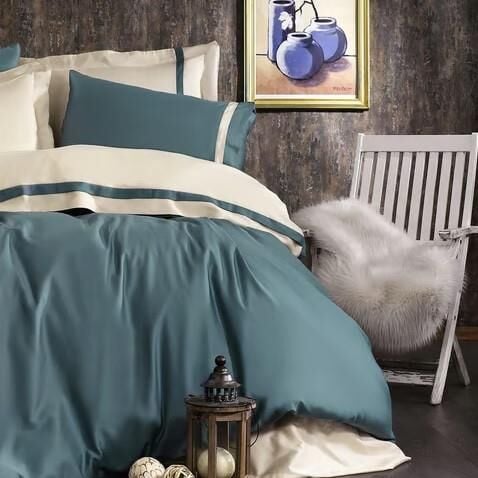 Nazik Home Elite Organik Pamuk Saten 6 Parça Nevresim Takımı Mavi Çift Kişilik